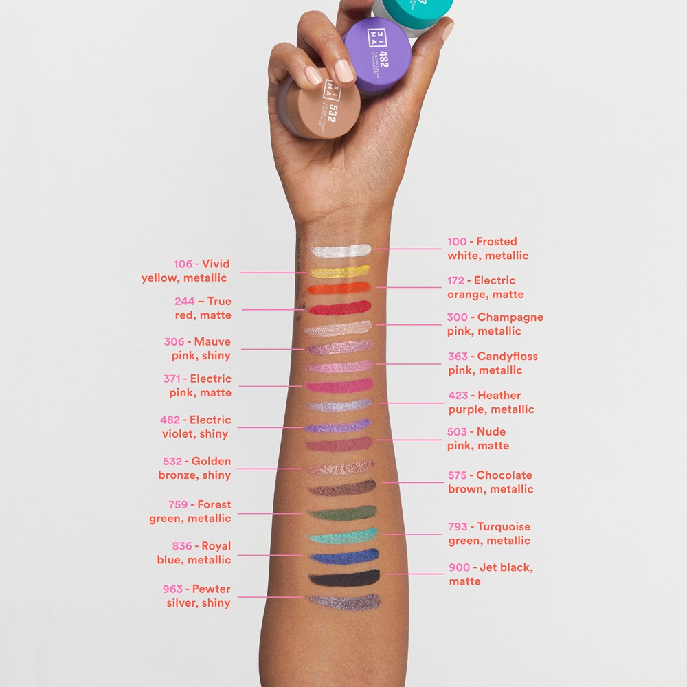 Твой макияж глаз будет идеальным благодаря теням для глаз 3INA The 24H Cream Eyeshadow. Их сильно пигментированная кремовая консистенция легко наносится, не скапливается в морщинах и позволяет создать макияж твоих мечт. Ты можешь нарисовать интенсивную линию или нанести тень и получить сильный эффект, который привлечет внимание каждого.