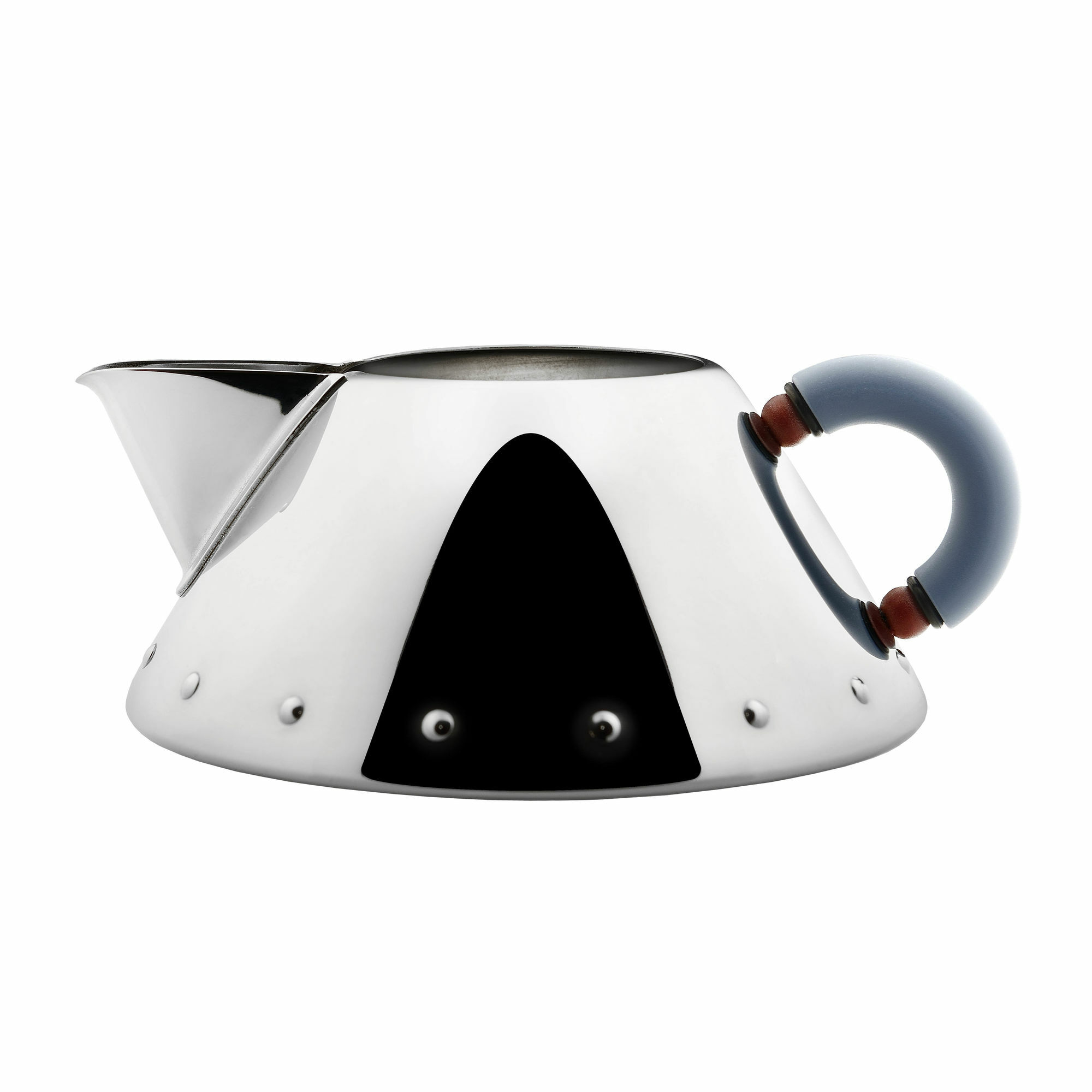 Молочник Alessi из коллекции 9030 емкостью 200 мл. Изготовлен из нержавеющей стали 18/10 серебристого цвета с глянцевой поверхностью. Имеет синюю пластиковую ручку. Его разработал Майкл Грейвс.