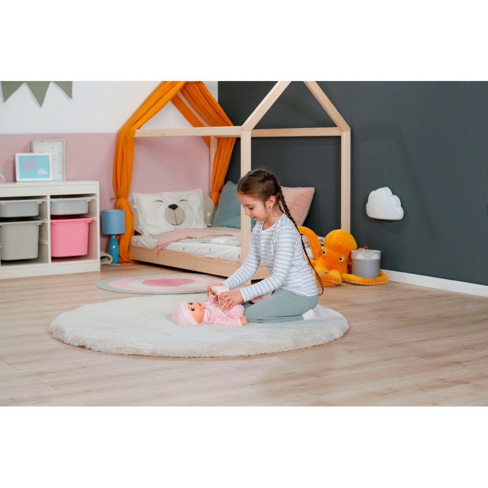 С первого контакта дети замечают, что кукла Baby Annabell особенная. У нее подвижные ножки, которыми она радостно шевелит (с небольшой помощью маленькой опекунши). Иногда она тихонько пищит, иногда весело смеется или мурлычет от удовольствия - и ребенок инстинктивно отвечает заботой, учась эмпатии и чувствительности. Нужно уложить ее спать? Или покормить из бутылочки, дать пустышку или укрыть мягким пледом? Каждый момент вместе становится ритуалом близости, который приносит чувство безопасности и помогает играть сценки из повседневной жизни. Благодаря режиму гимнастики для младенцев, Annabell также реагирует на движение и прикосновение. Проводите с малышкой различные упражнения, чтобы услышать, как она смеется и пукает!