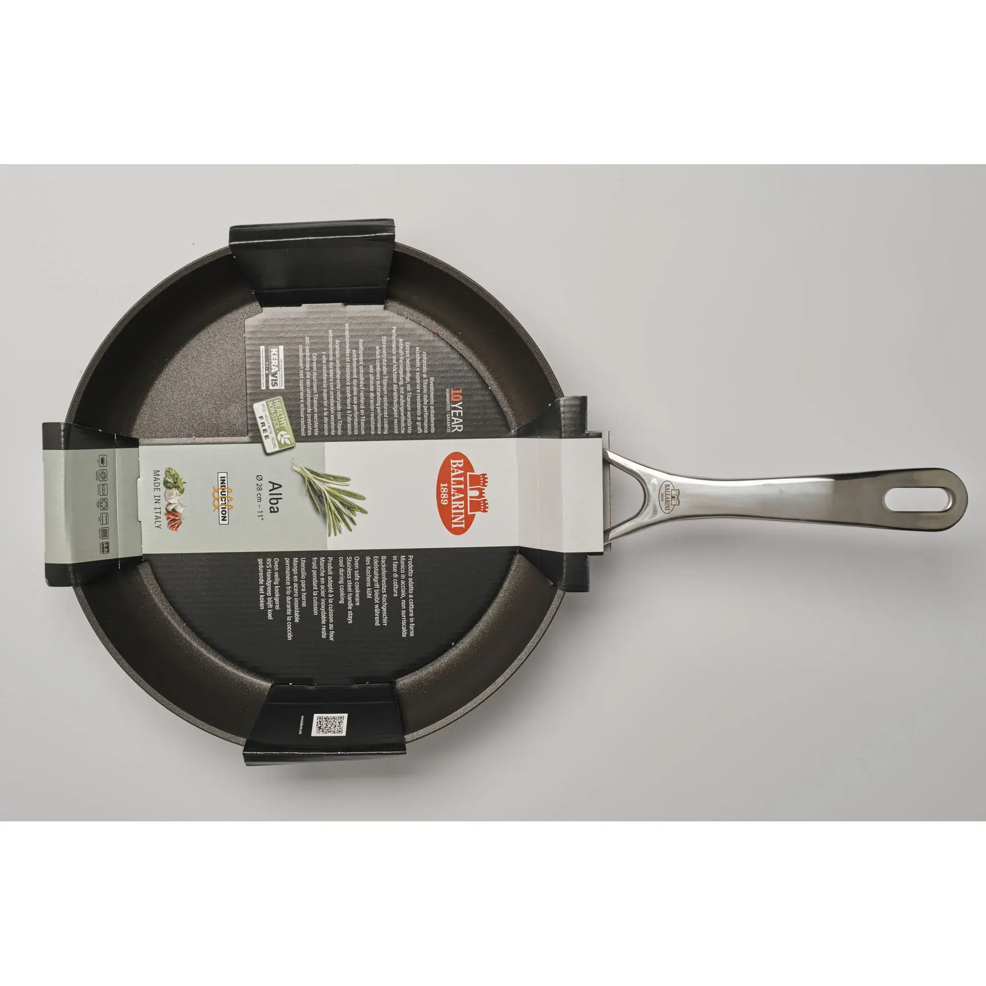 Большая сковорода диаметром 32 см из серии Alba известна среди поваров своей исключительной стойкостью и многослойным антипригарным покрытием Keravis TI-X. Главным преимуществом продукции итальянского бренда Ballarini является дополнительно обогащенный титановый слой, который делает сосуд устойчивым к любым вздутиям и царапинам, возникающим в процессе его использования.
