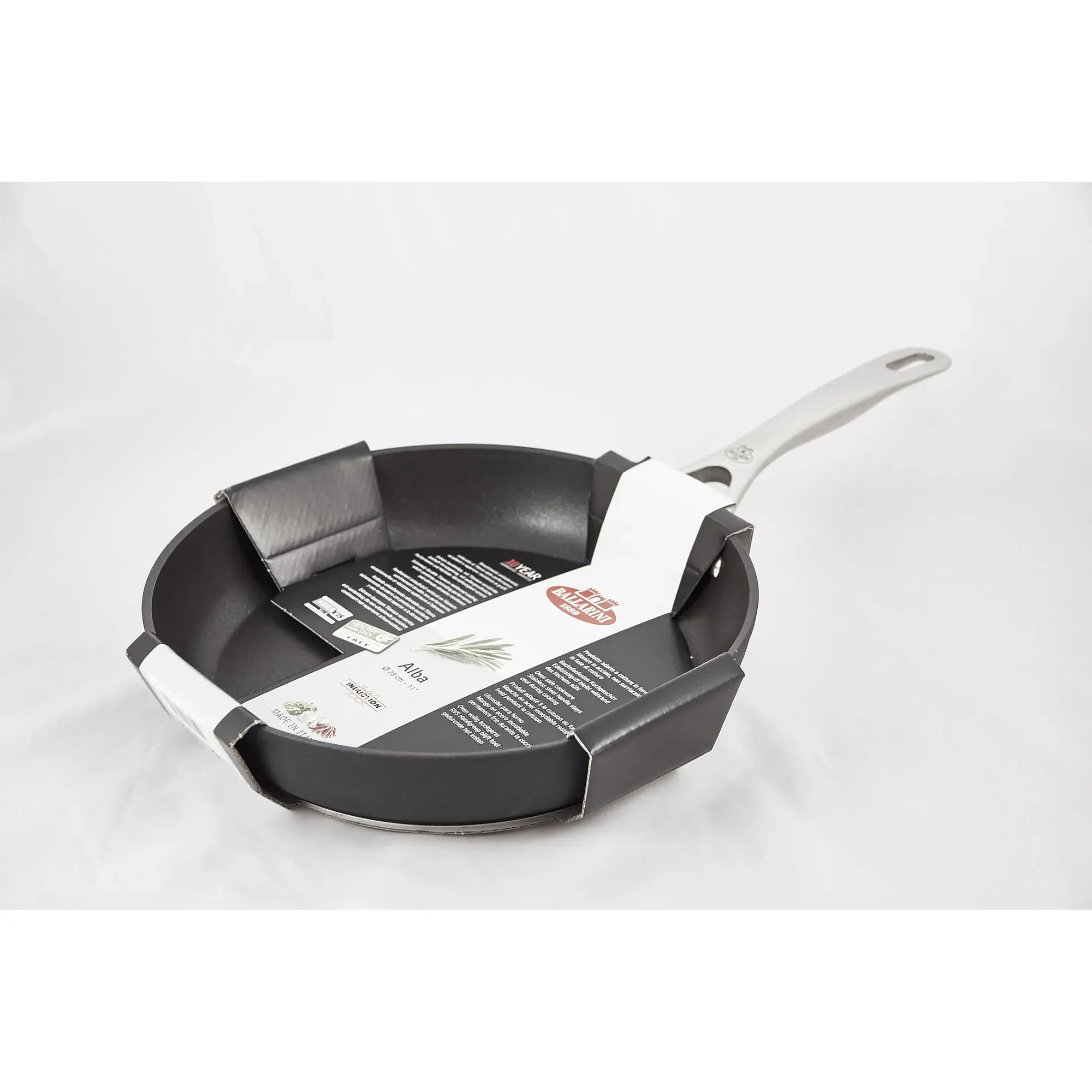 Дно сковороды Альба изготовлено из многослойного кованого пищевого алюминия, дополнительно армированного высококачественной нержавеющей сталью. Благодаря такому использованию все сковороды серии Alba подходят для всех типов плит, включая индукционные. Многослойное дно сковороды также прекрасно поглощает тепло, что делает жарку любимых блюд более эффективной и энергосберегающей.