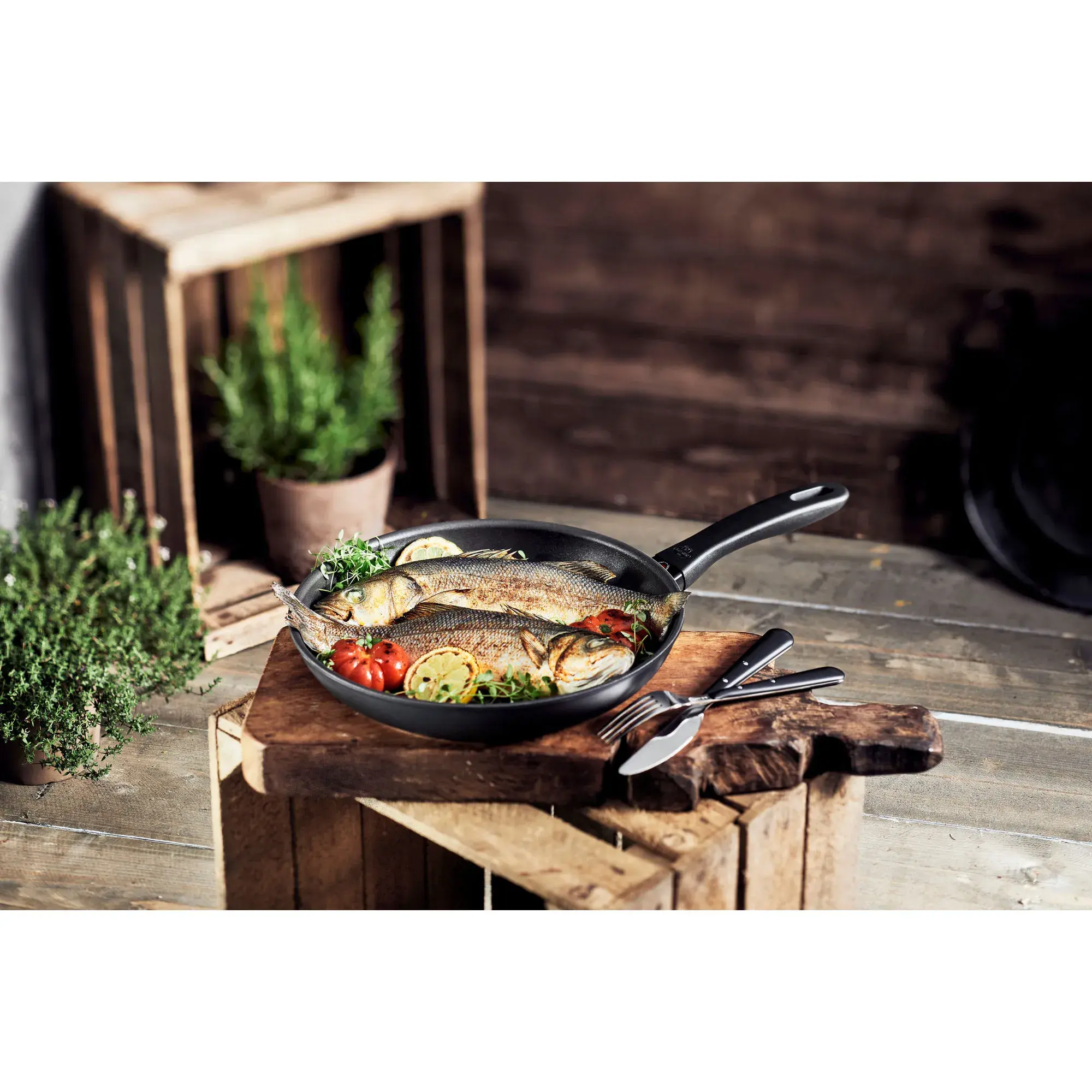 Неглубокая сковорода Avola диаметром 28 см от итальянского бренда Ballarini – это идеальное сочетание высокого качества и многозадачности. Посуда этой серии отличается легким корпусом, покрытым великолепным антипригарным покрытием, благодаря которому вы сможете жарить любимые блюда с небольшим количеством жира.
