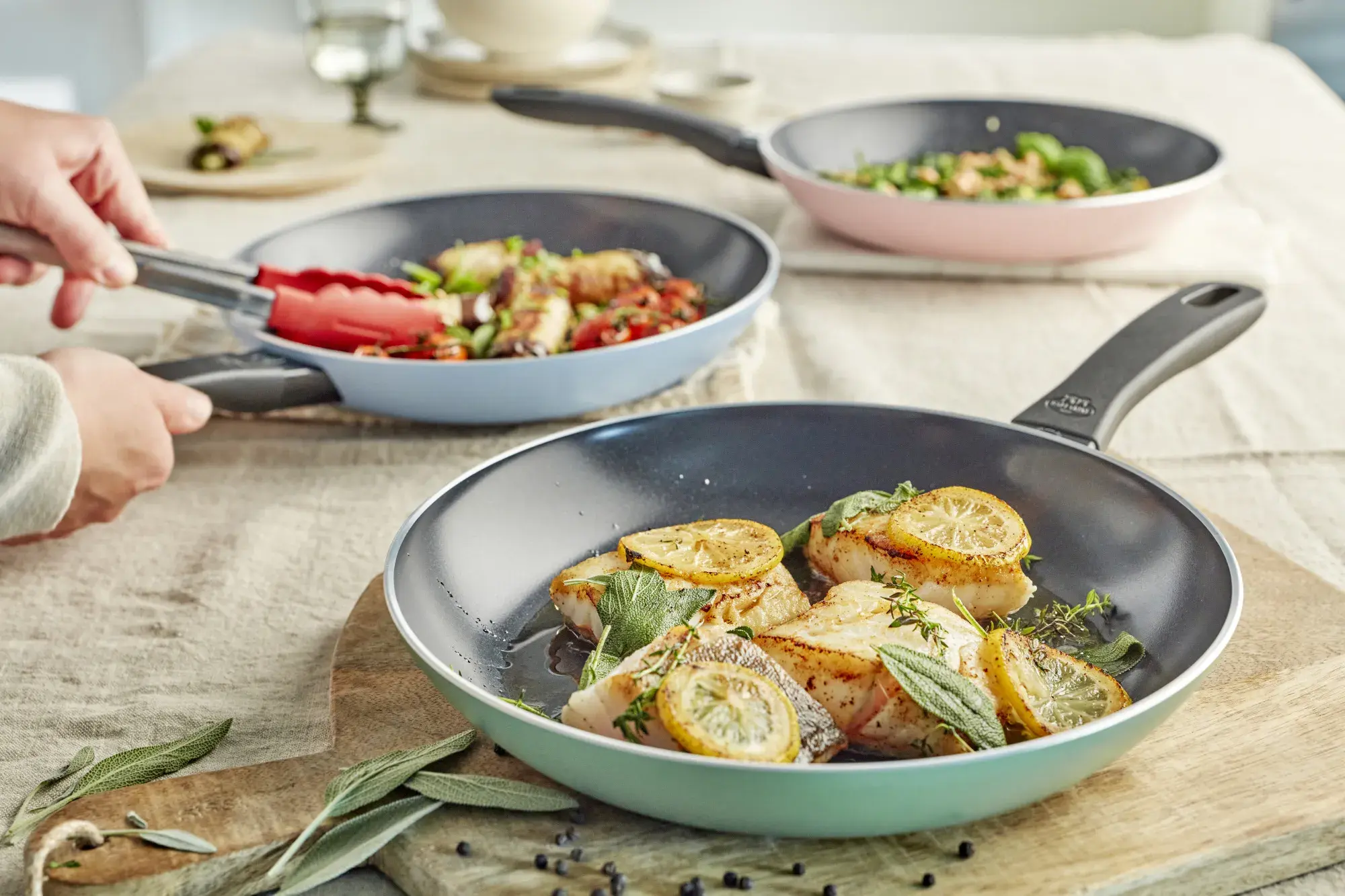 Коллекция Caprera от Ballarini, представленная в ярких зеленых, розовых, синих и красных цветах, сочетает в себе итальянский дизайн и функциональность. Посуда с антипригарным покрытием KERA GLOSS и эргономичными ручками от Маттео Туна и Антонио Родригеса обеспечивает комфортное приготовление пищи. Индикатор THERMOPOINT и технология Radiant Induction гарантируют идеальный результат на всех плитах, включая индукционные. Caprera - это элегантность и практичность, которые оживят любую кухню.