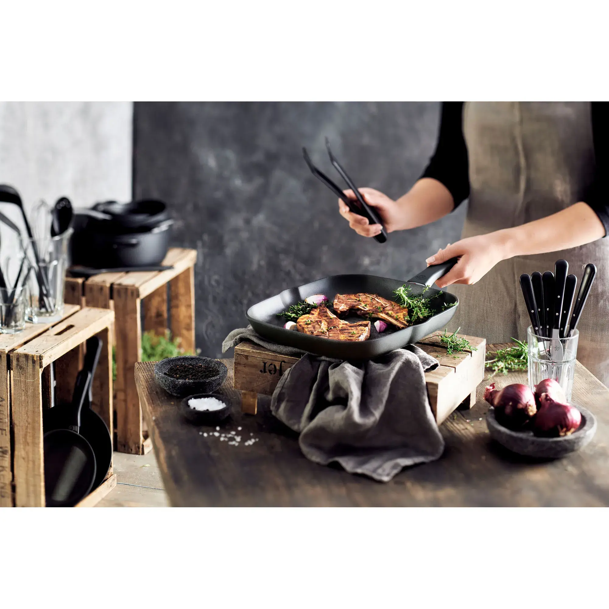 Сковорода-гриль Avola размерами 28х28 см от итальянского бренда Ballarini – это идеальное сочетание отличного качества и многозадачности. Посуда этой серии отличается легким корпусом, покрытым великолепным антипригарным покрытием, благодаря которому вы сможете жарить любимые блюда с небольшим количеством жира.