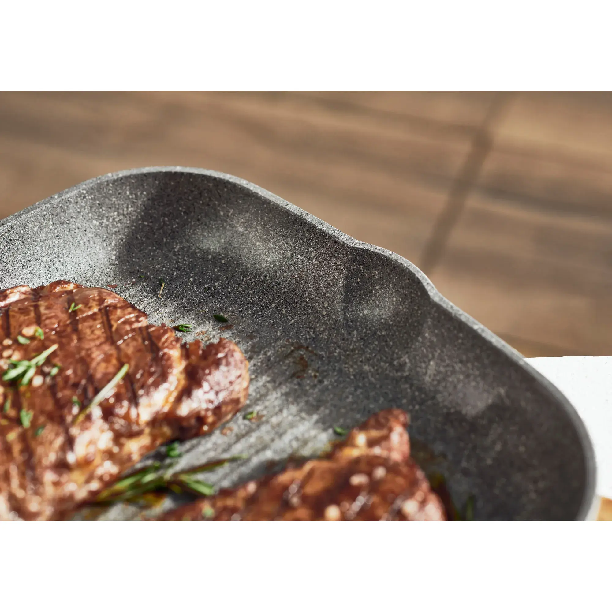 - Качественное антипригарное покрытие Granitium Extreme внутри и снаружи сковороды позволяет жарить без добавления большого количества жира и использования металлических инструментов на поверхности сковороды.