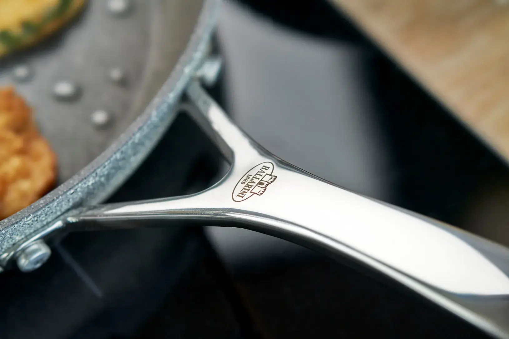 Сковорода Salina Granitium диаметром 32 см от итальянского бренда Ballarini – это сосуд, изысканный в каждой детали. Благодаря антипригарному 6-слойному покрытию Granitium Ti-X, усиленному слоем титана, сковорода чрезвычайно прочна.