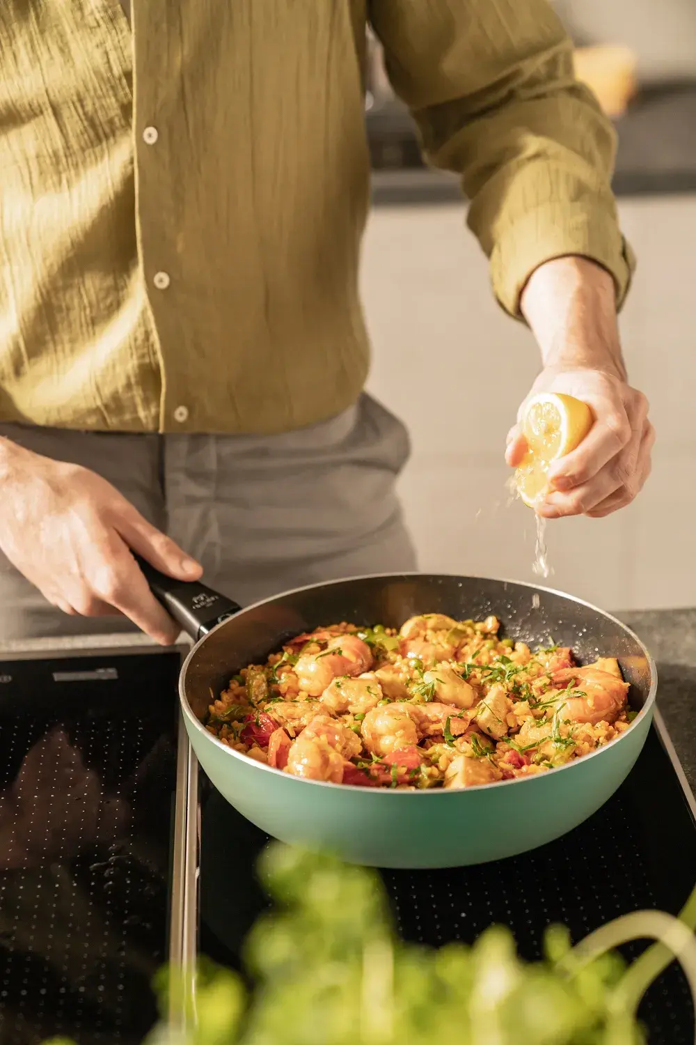 Технология Radiant Induction обеспечивает быстрое и равномерное распределение тепла по дну сковороды, благодаря чему блюда получаются идеально приготовленными. Сковорода Caprera с антипригарным покрытием подходит для всех типов плит и особенно хорошо работает на индукционных плитах, обеспечивая универсальность и надежность.