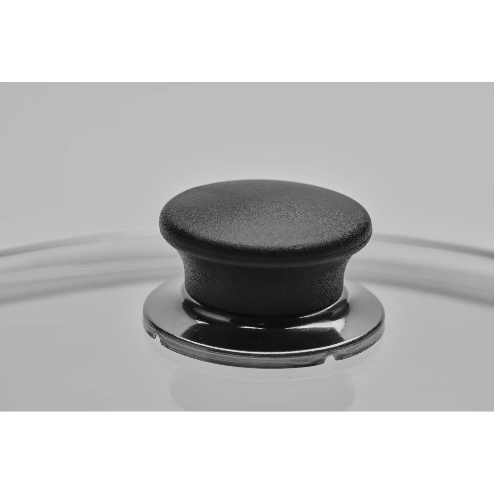 Благодаря стальному воротнику крышка идеально прилегает к сосуду и выглядит эстетично. Благодаря отверстию в поверхности будет выходить лишний пар, без риска «подпрыгивания» крышки. Ручка изготовлена из прочного черного материала, который ограничивает нагрев и обеспечивает безопасный и надежный захват.