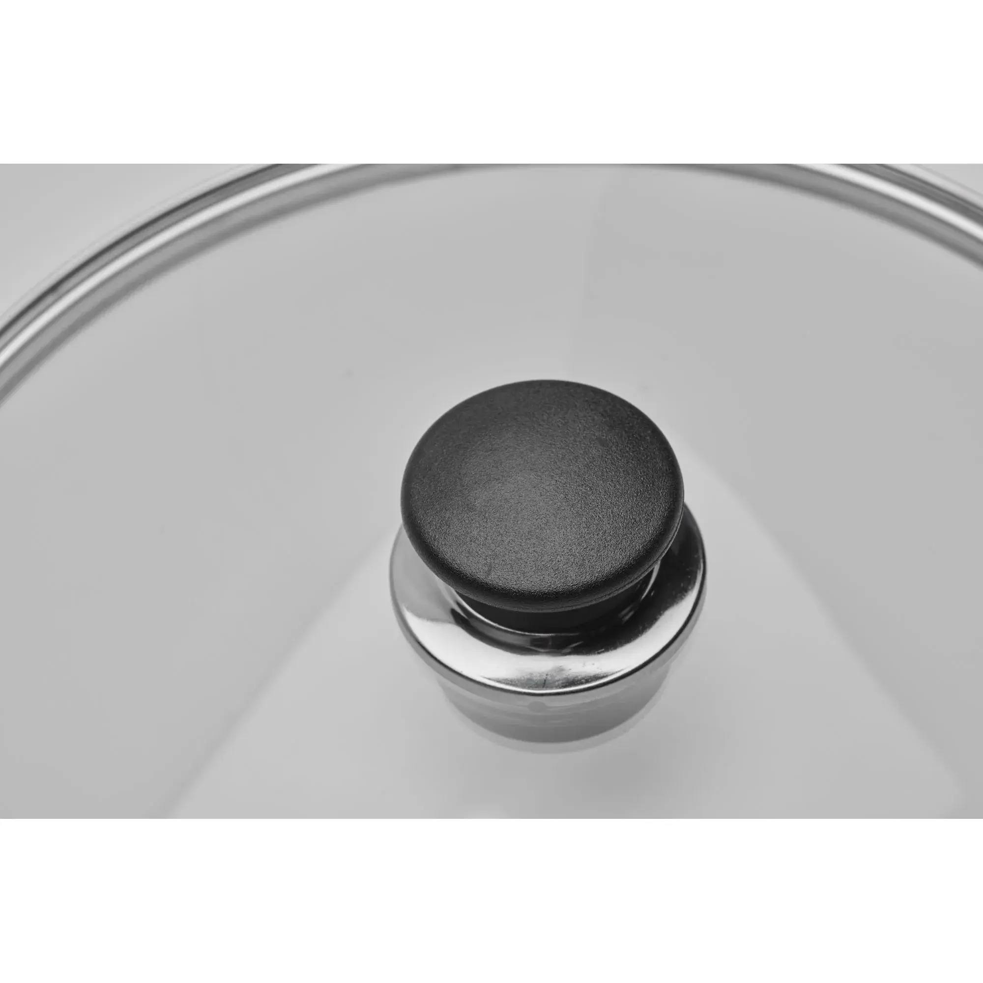 Крышка изготовлена из качественного закаленного стекла, что делает ее идеальной для варки, тушения или даже длительного жарения.