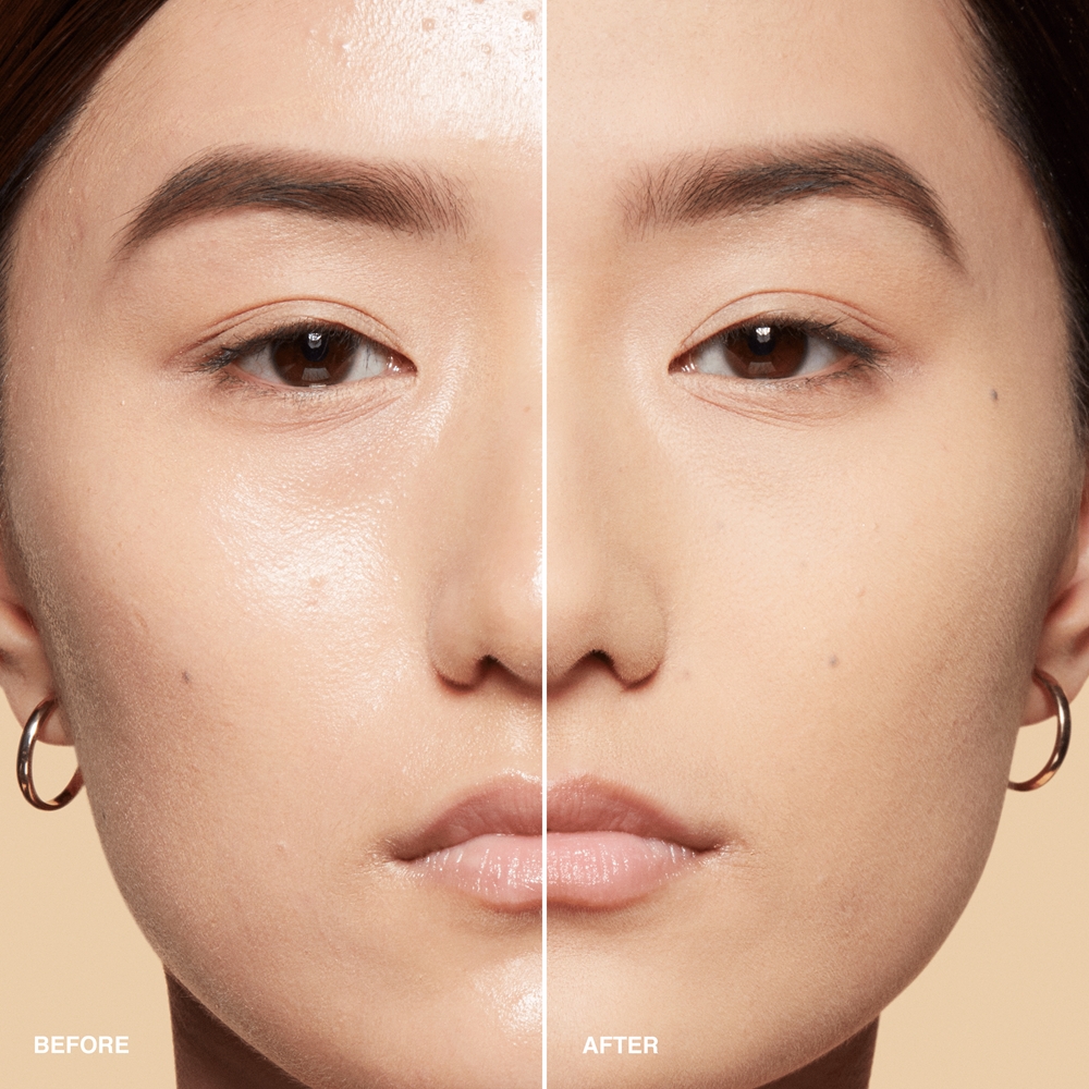 Используя прилагаемую к пудре кисть, нанесите ее легкими утрамбовывающими движениями вдоль зоны T или нанесите на всю поверхность, чтобы получить матовый вид всего лица.