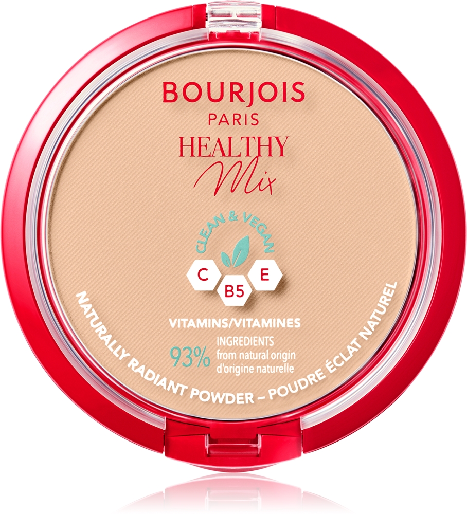 Привет, сияющая кожа! Пудра Bourjois Healthy Mix борется с усталостью, выравнивает тон кожи, устраняет блеск и придает коже сияние, обеспечивая безупречный, естественный макияж. Обогащенный витаминами C, E и B5, этот инновационный комплекс обеспечивает эффект против усталости, возвращая коже сияние.