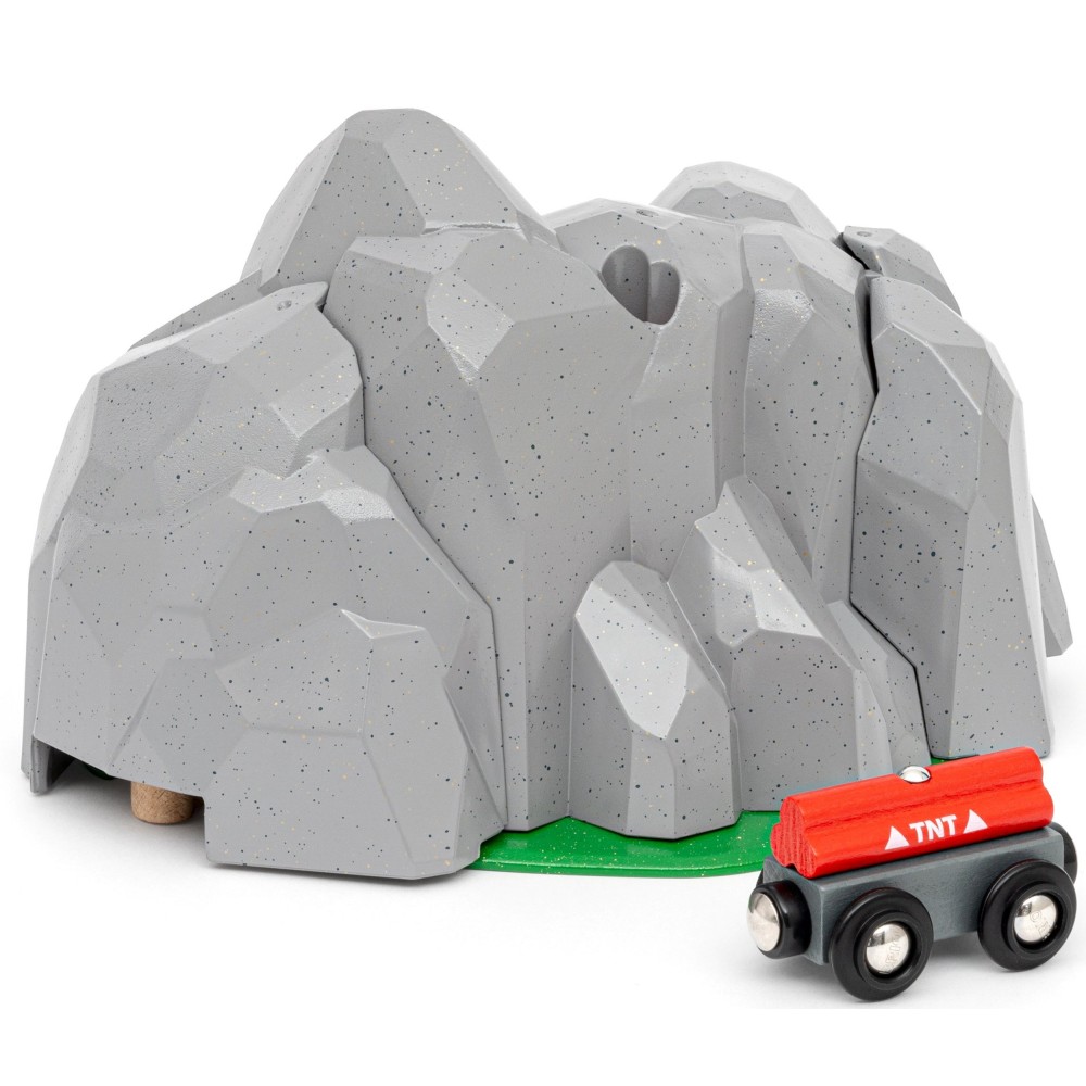 Взрывной туннель - отличное и захватывающее дополнение к деревянным путям BRIO. Взорвите скалу, чтобы проезжающий поезд мог пройти. Положите заряд ТНТ в специальное отверстие, нажмите и... бум! Элементы горы автоматически отскакивают в стороны, открывая секретный проход!