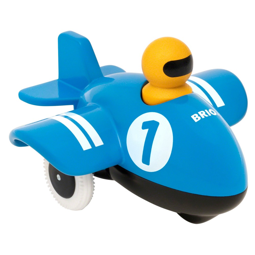 Самолет от Brio предназначен для маленьких детей. Благодаря функции "нажми и поедь" малыши сами запускают игрушку в движение, чтобы следовать за ней - ползая или делая первые шаги.
