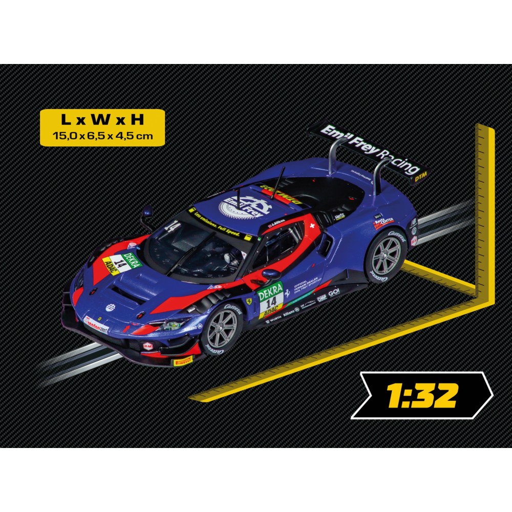 Ferrari 296 GT3 "Emil Frey Racing, No.14" участвовал в гонках серии DTM (Deutsche Tourenwagen Masters) 2023. Это одна из самых престижных и популярных гоночных серий в Европе, где соревнуются автомобили класса GT3, представляющие ведущие автомобильные марки.