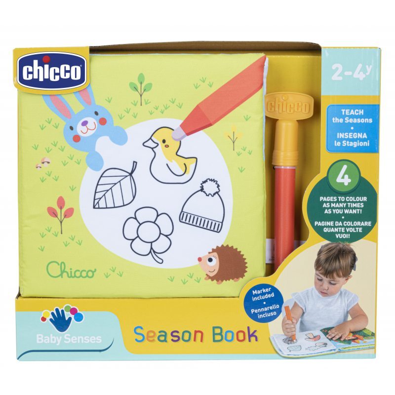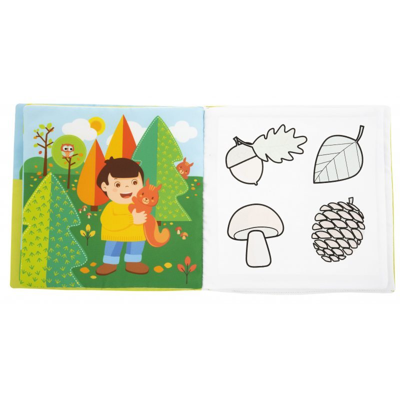 Book 4 Seasons 10631— это текстильная книжка-раскраска с многоразовым волшебным водным маркером, который учит временам года и их характеристикам. После заполнения фломастера водой, как только его кончик коснется белой стороны книги, цвета на картинках волшебным образом проявятся. Когда вода высыхает, цвет исчезает, и фотографии готовы к перекраске! Книгу можно раскрашивать несколько раз, в набор входит многоразовый водяной маркер.