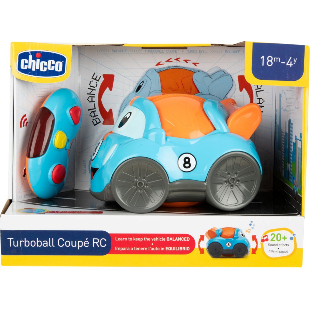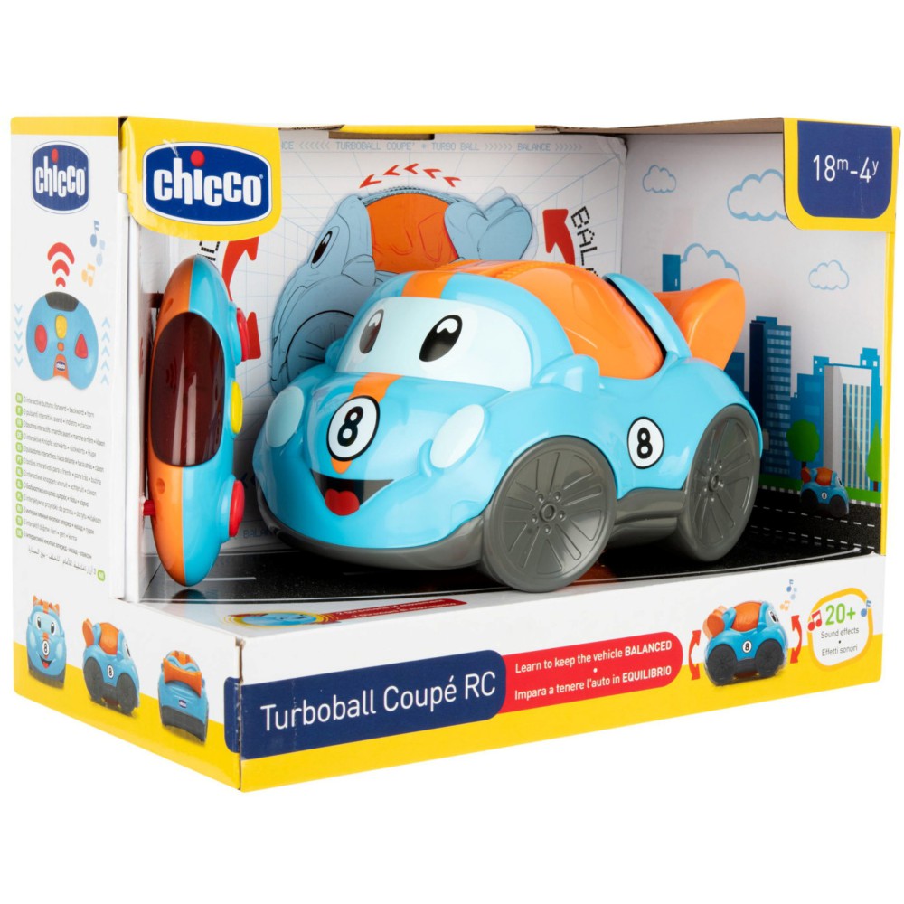Встроенная шаровая камера, вращаясь, приводит в движение машинку. Машина движется вперед и назад, а также может устойчиво останавливаться на месте. Удобный пульт имеет три интерактивные кнопки - движение вперед, движение назад и клаксон, что способствует быстрому освоению управления. Turbo Coupe RC издает более двадцати веселых звуков и мелодий, которые делают игру еще интереснее.
