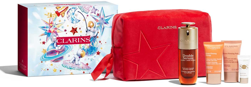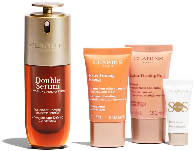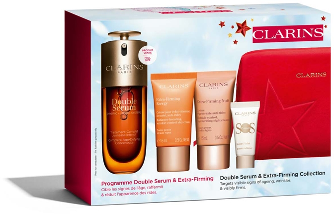 Все для красивой кожи в одной упаковке. Набор косметики Clarins Double Serum & Extra Firming Collection содержит не один, а несколько продуктов, которые помогут улучшить или обогатить ежедневный уход за кожей, доставляя радость вам или вашим близким.
