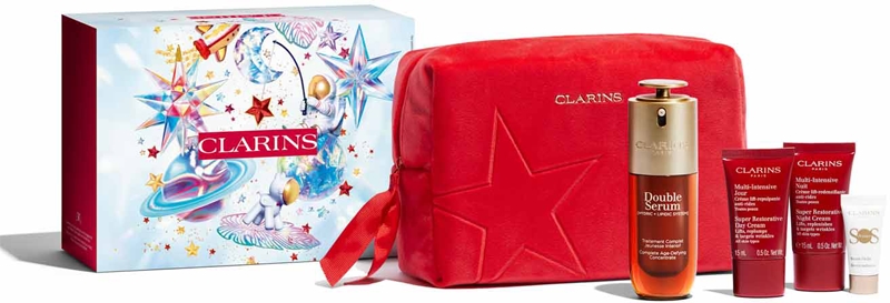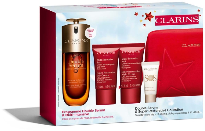 Все для красивой кожи в одной упаковке. Набор косметики Clarins Double Serum & Super Restorative Collection содержит не один, а несколько продуктов, которые помогут улучшить или обогатить ежедневный уход за кожей, доставляя радость вам или вашим близким.