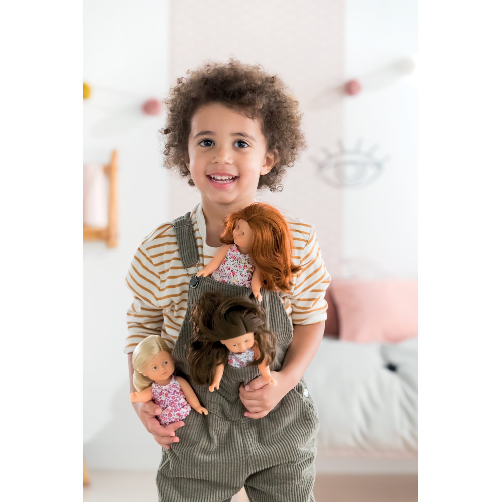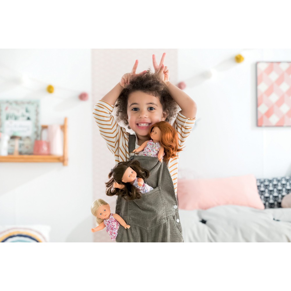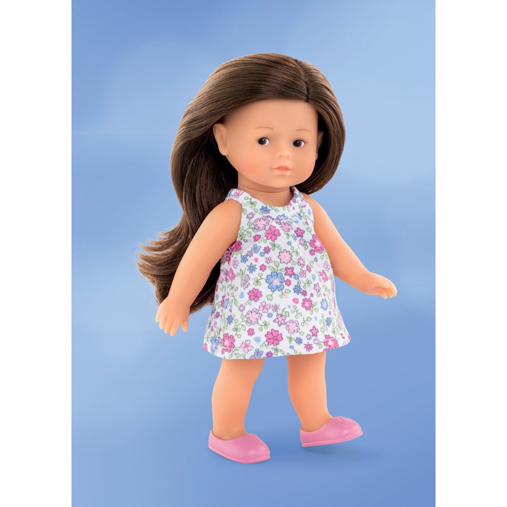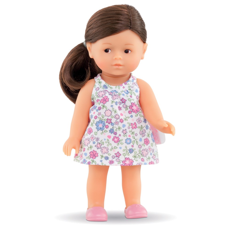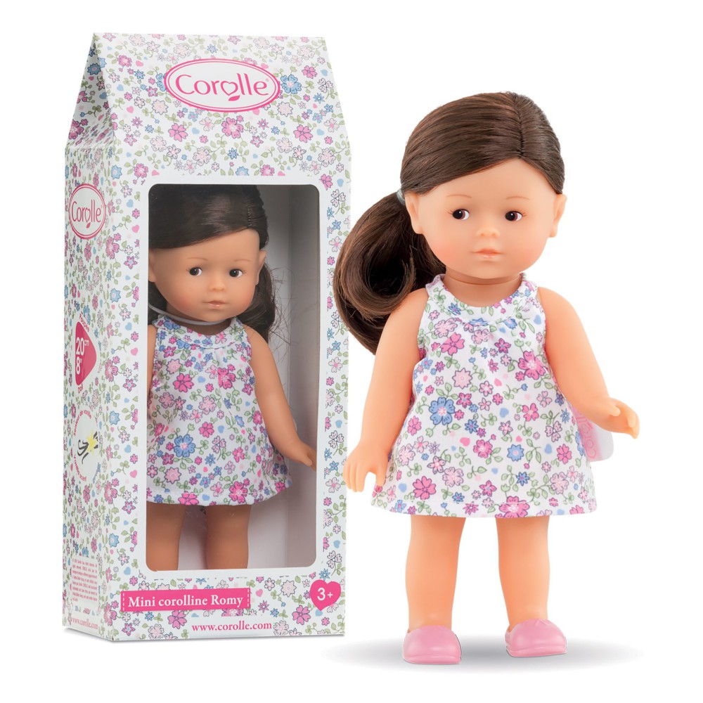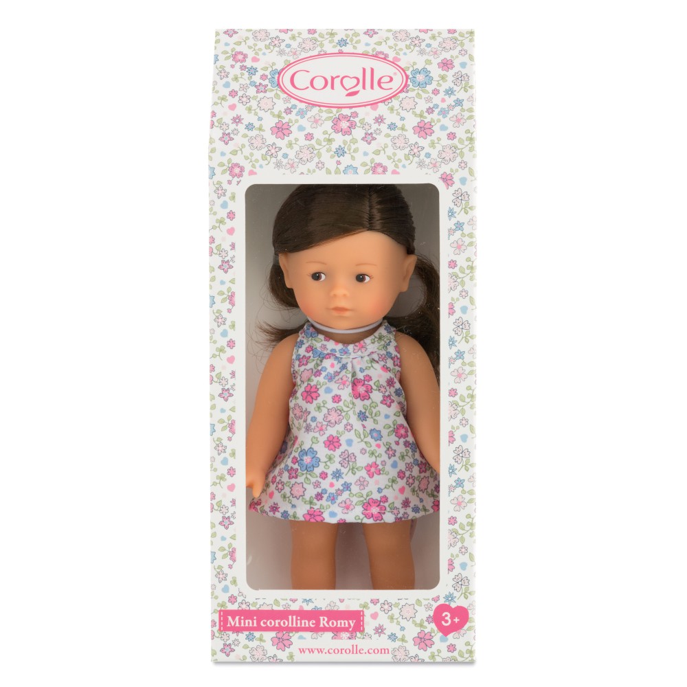Кукла Мини Короллин Роми, упакованная в красивую упаковку, идеальна для любого случая. У куклы полностью виниловое тело, которое приятное на ощупь и нежно пахнет ванилью. У нее коричневые глаза и длинные коричневые волосы, которые можно расчесывать и стилизовать. Она одета в очаровательное цветочное платье, трусики и сапожки (не снимаются). С ее всего 20 см она идеального размера, чтобы положить ее в сумку или рюкзак - она может быть компаньоном ребенка на весь день!