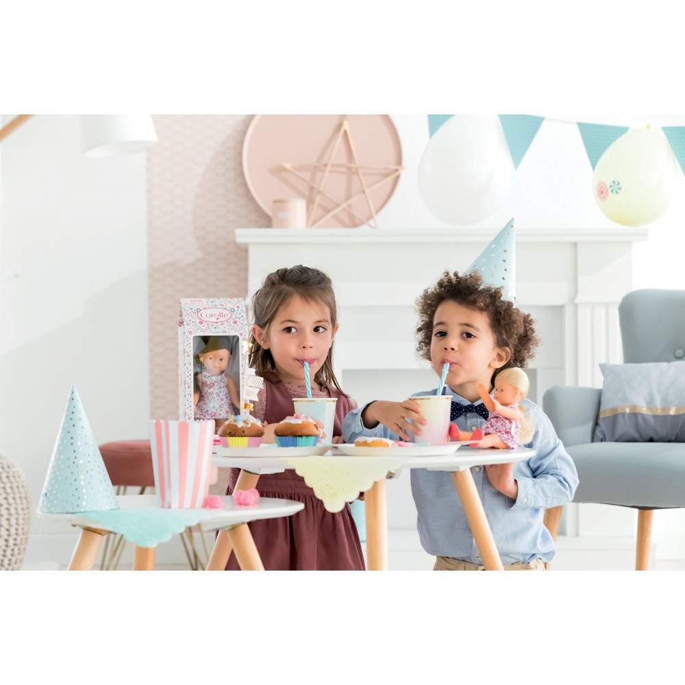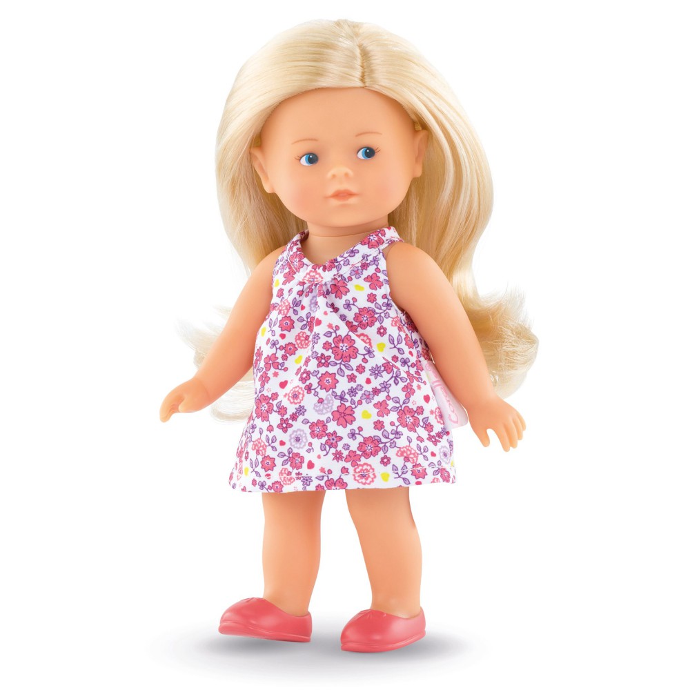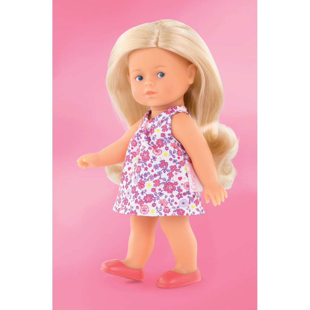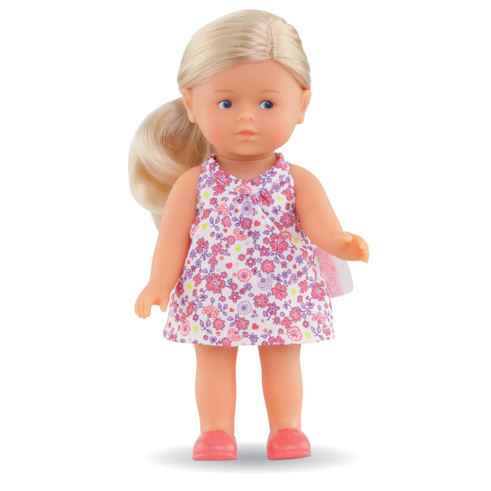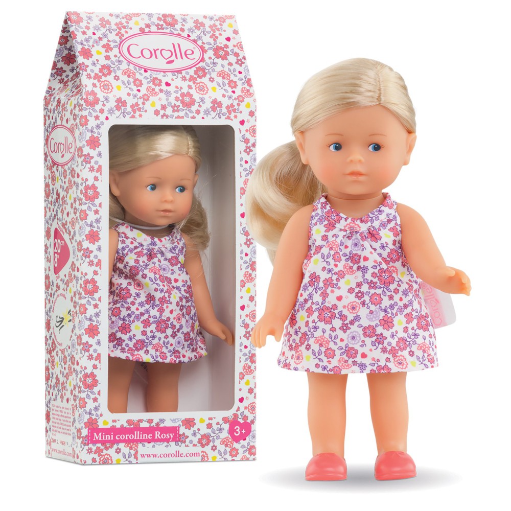 Кукла Мини Короллин Рози, упакованная в красивую упаковку, идеальна для любого случая. У куклы полностью виниловое тело, которое приятное на ощупь и слегка пахнет ванилью. У нее голубые глаза и длинные блондинистые волосы, которые можно расчесывать и стилизовать. Она одета в очаровательное цветочное платье, трусики и сапожки (не снимаются). С ее всего 20 см она идеального размера, чтобы поместить ее в сумку или рюкзак - она может быть компаньоном ребенка на весь день!