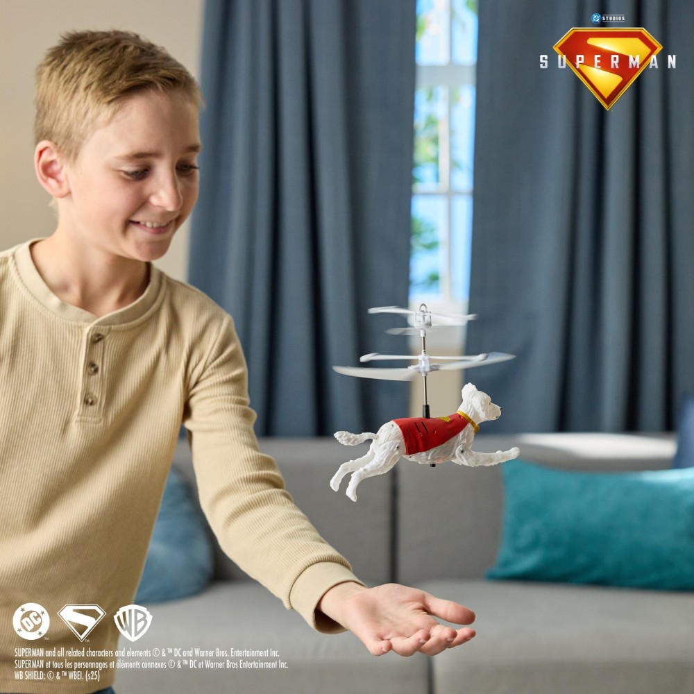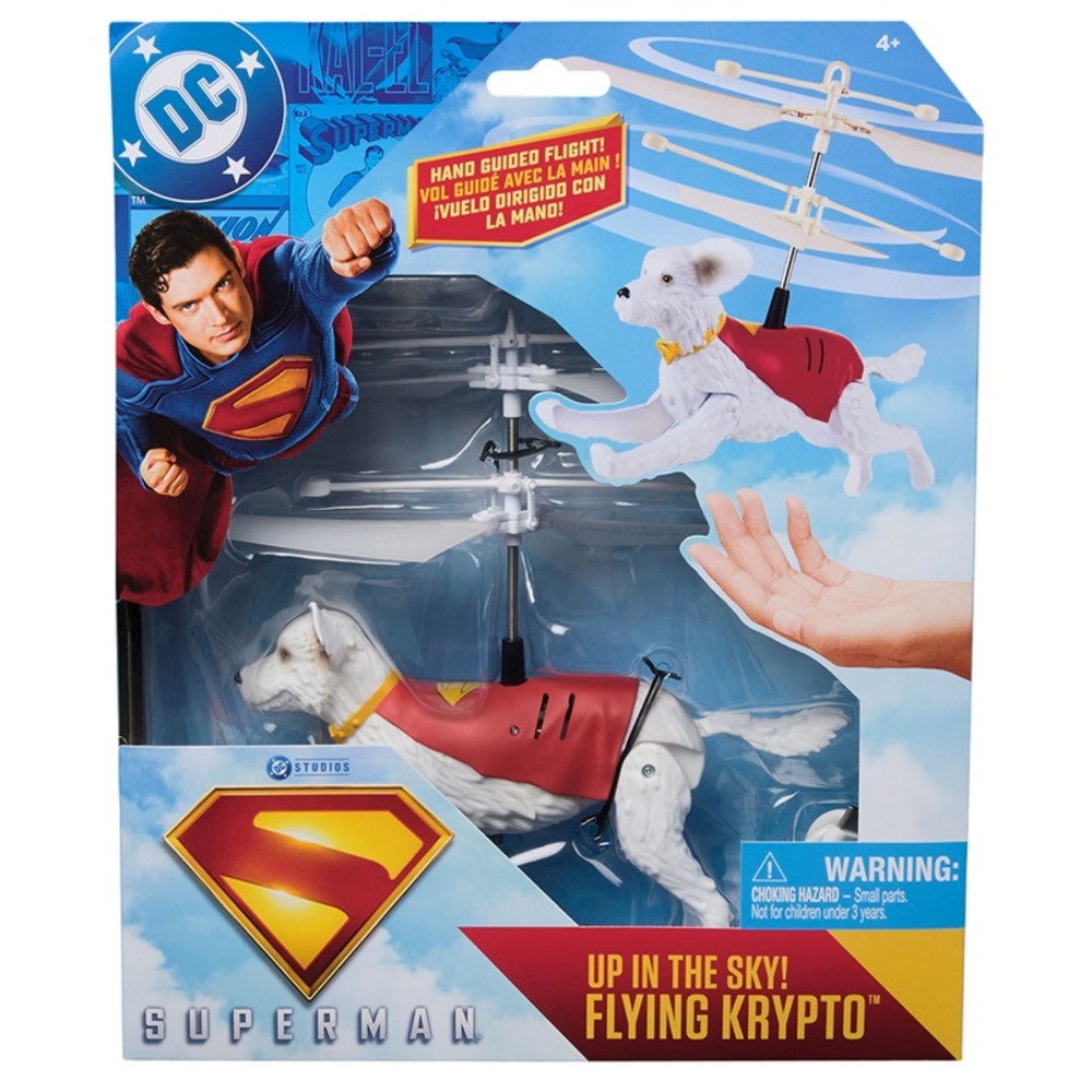 ЛЕТАЮЩИЙ КРИПТО - это интерактивная собака Супермена, которая может подняться в воздух! Суперсобака оживает, и ею управляет ребенок! Крипто поднимается благодаря винтам и парит над рукой владельца игрушки. Не требуется пульт! Ручное управление полетом очень удовлетворительно и увлекательно! Просто возьмите фигурку в вертикальном положении, включите, подождите, а затем отпустите игрушку. Теперь положите руку под Крипто, и собака будет самостоятельно держаться над ней. Воздушные акробатики Крипто вдохновляют детей на бесконечную игру! В комплекте поставляется USB-кабель для зарядки, чтобы ваш супер лучший друг всегда был готов к смелым миссиям.