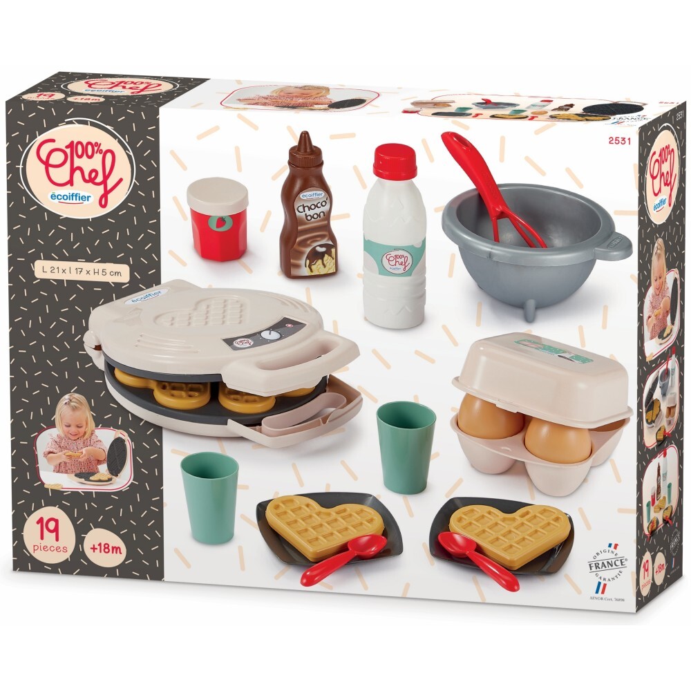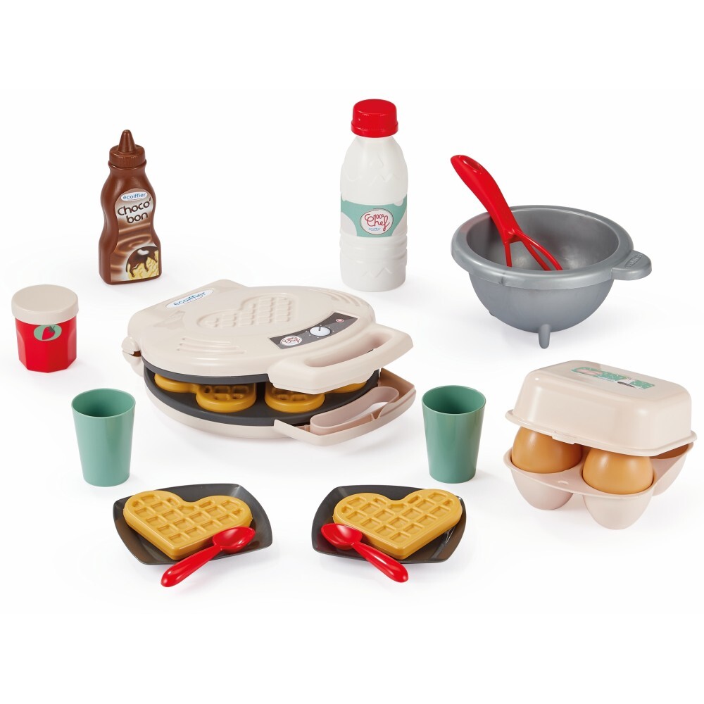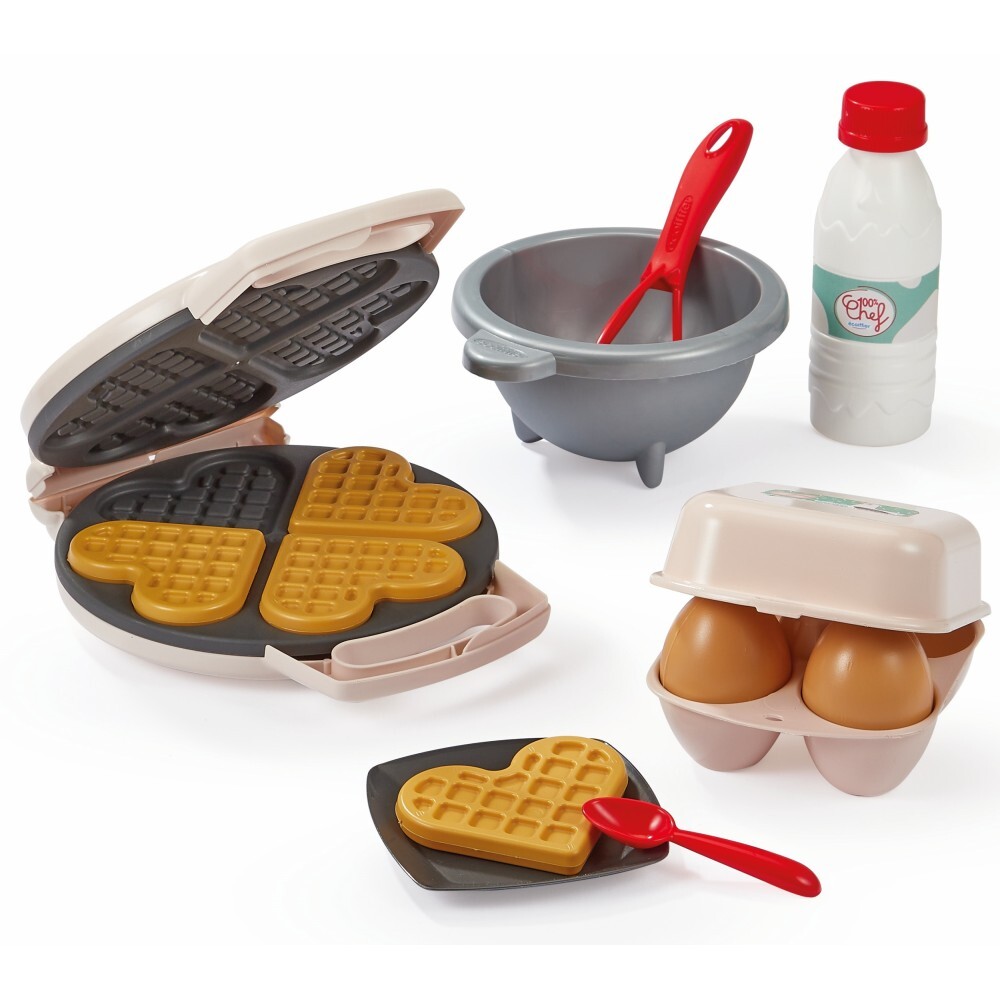 Набор с вафельницей позволяет детям взять на себя роль настоящего кондитера и приготовить сладкий праздник в детской игровой зоне. В набор входят вафельница, вафли в форме сердца, пищевые ингредиенты, миска для смешивания теста, стаканчики и другие аксессуары - всего девятнадцать предметов, которые идеально подходят для творческих кулинарных забав! Это отличный способ развивать воображение, ручные навыки и учиться, разыгрывая повседневные ситуации. Набор разработан с учетом пожеланий малышей - крупные, легкие и безопасные детали без острых краев идеально ложатся в детские руки и подходят для использования с восемнадцатимесячного возраста.