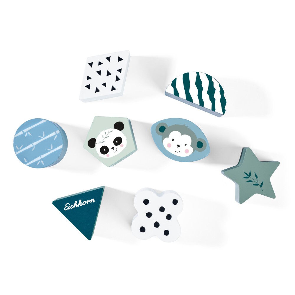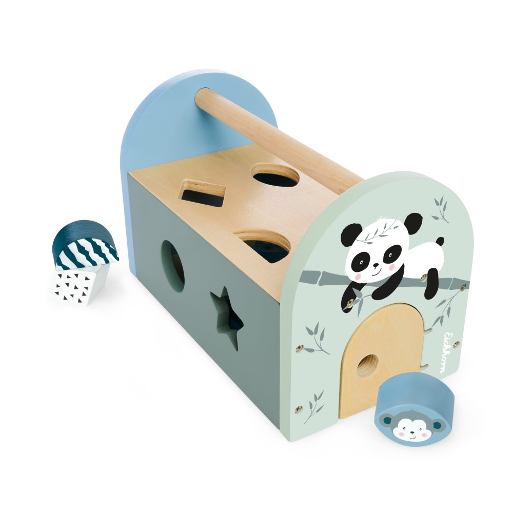 Деревянный сортер форм - это очаровательный ящик с различными формами и восемью блоками. Сортер выполнен из березового дерева и украшен милыми графиками с пандой и обезьянкой.