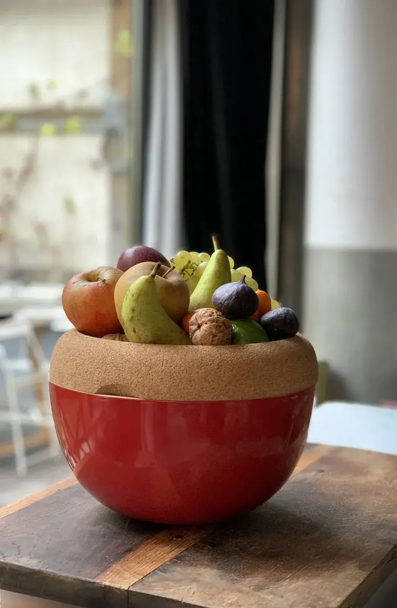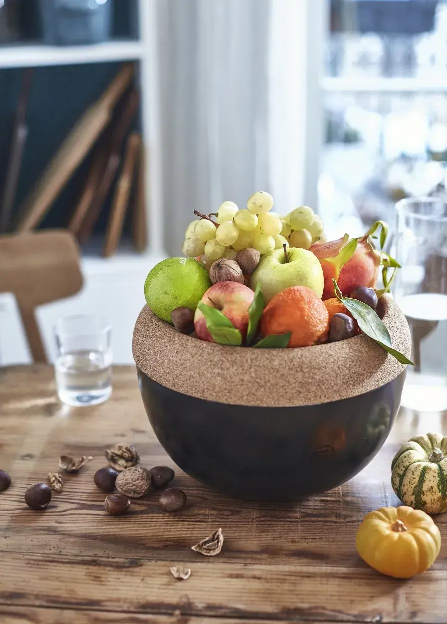 Пробковый верх чаши был тщательно продуман, чтобы обеспечить безопасное и бережное хранение фруктов. Благодаря опоре на пробковой поверхности вы минимизируете риск повреждения фруктов при соприкосновении.