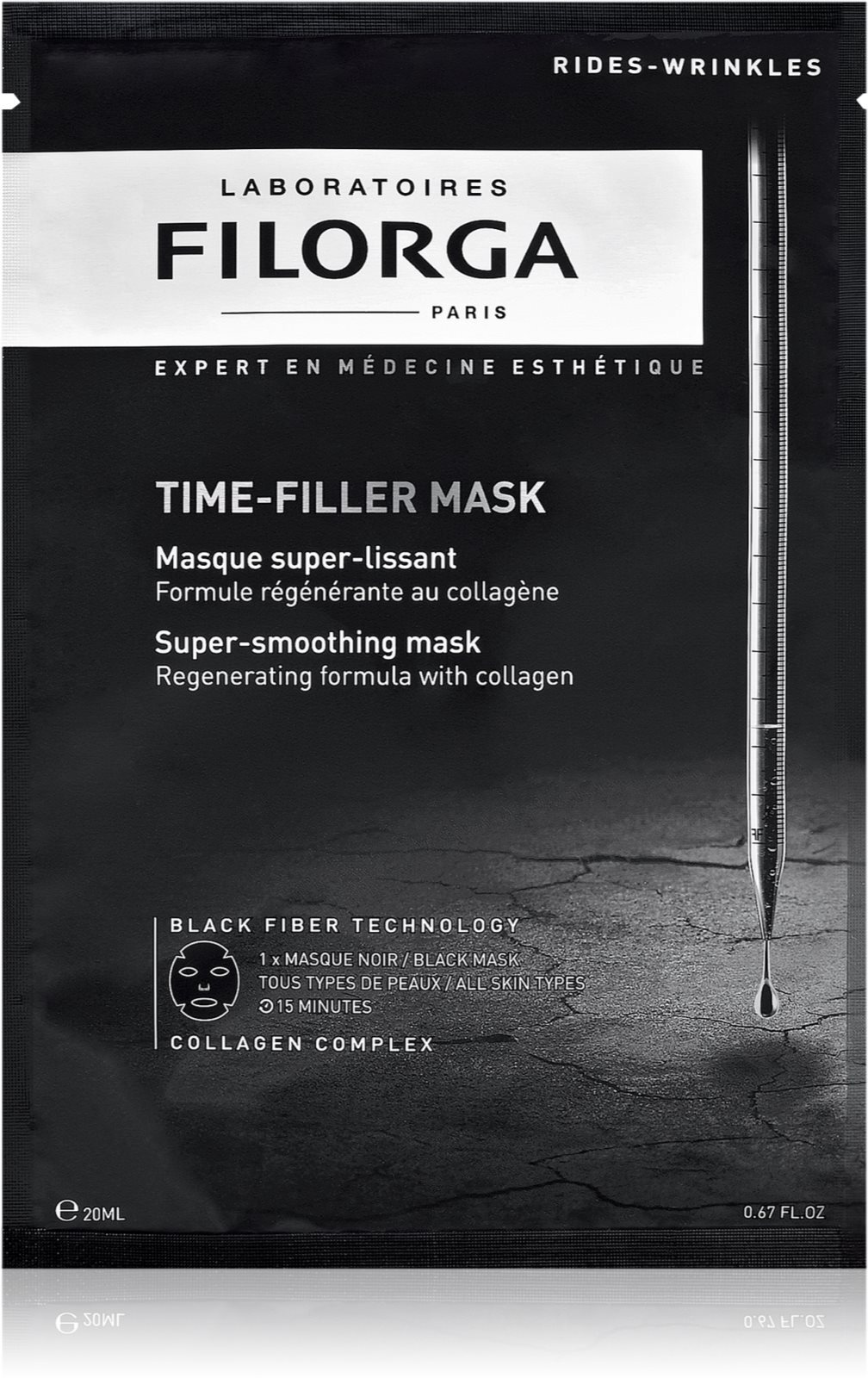 Противодействуйте признакам старения с помощью разглаживающей маски FILORGA TIME-FILLER с коллагеном, которая заметно разглаживает морщины, делая кожу гладкой и бархатистой на ощупь. Черная маска изготовлена