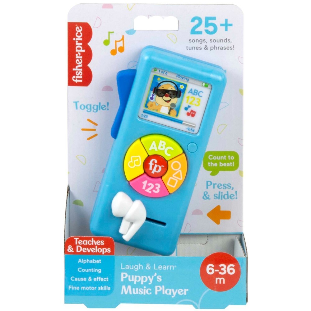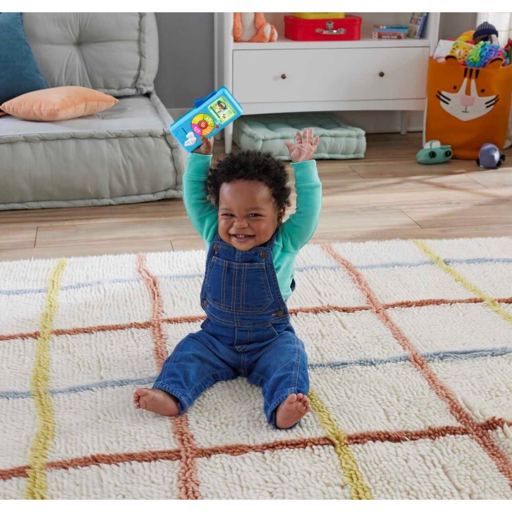 - Fisher-Price Music Player 123 - это интерактивная музыкальная игрушка, которая выглядит совсем как настоящая. У нее есть экран с подсветкой и большие разноцветные кнопки. Подходит для малышей от шести месяцев.
