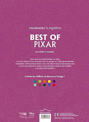 Познакомься с Баззом молниеносным, Коко, Вольтом, Бобом и Салли и многими другими в этой книге, которая содержит лучшие из 100% загадочных раскрасок, посвященных твоим любимым героям Pixar !