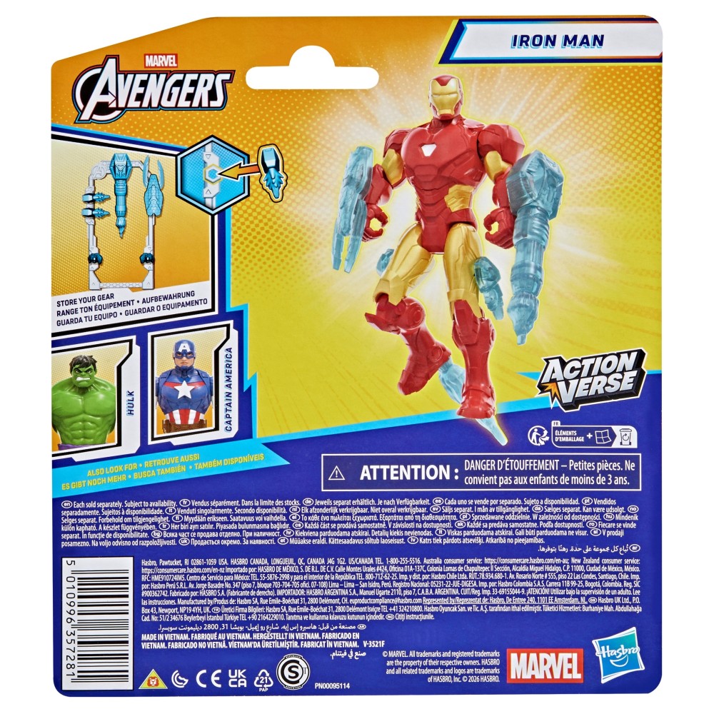 Фигурка IRON MAN изображает гениального изобретателя Тони Старка в его культовой броне в классическом комиксном стиле Marvel. Игрушка имеет девять точек артикуляции, позволяя ребенку расставлять модель в динамичных боевых позах - во время выстрела из репульсора или во время полета. В комплекте пять прикрепляемых полупрозрачных синих аксессуаров, вдохновленных персонажем - включая репульсорное орудие, эффекты допалителей для рук и ног, а также элементы для персонализации - позволяют создавать собственные сценарии приключений Мстителей. Прилагаемая рамка для гаджетов служит практичным держателем для хранения дополнительных аксессуаров, облегчая поддержание порядка после игры. Фигурка совместима с другими продуктами из серии Hasbro ActionVerse - аксессуары и элементы можно соединять с другими фигурками Marvel Avengers ActionVerse (продается отдельно).