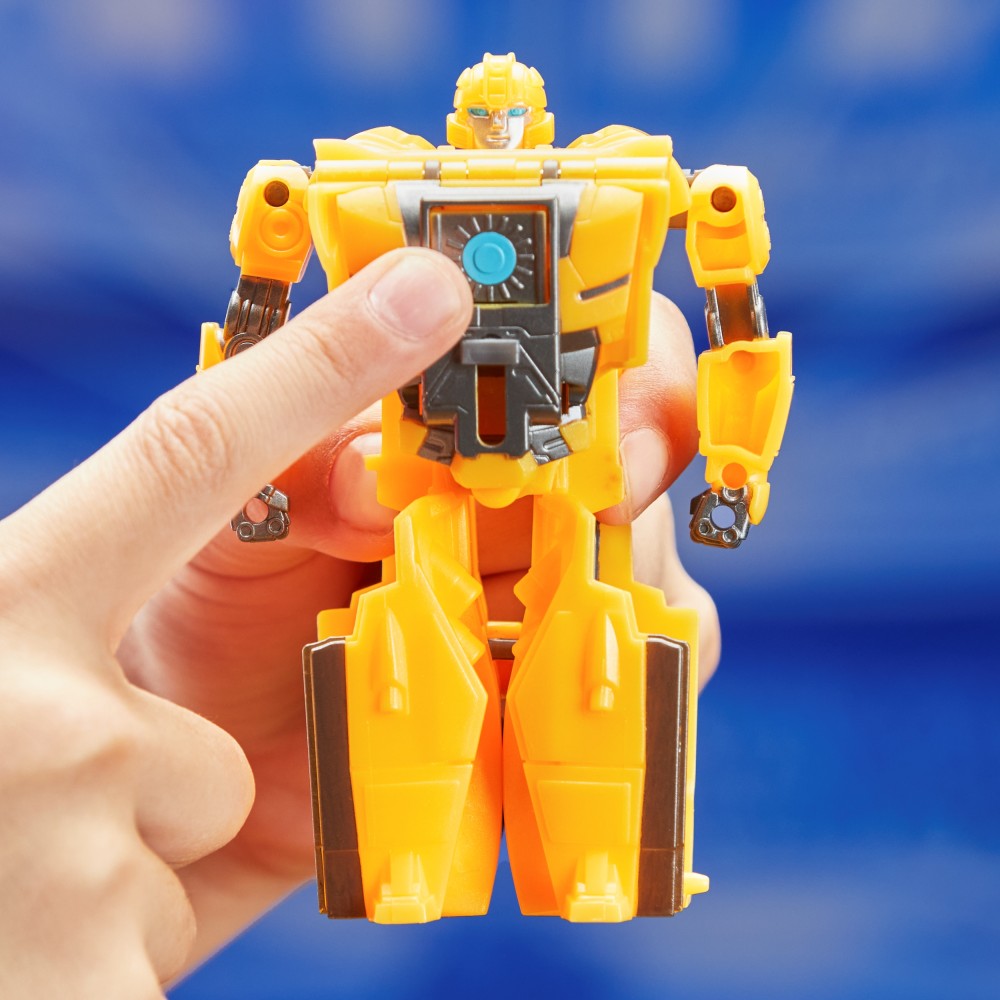 Фигурка Bumblebee B-127 превращается из робота в кибертронический автомобиль всего в один шаг. Посмотрите, как происходит автоматическая трансформация! Передвиньте панель на груди Автобота и нажмите кнопку. Робот мгновенно превращается в гоночный автомобиль! Обратное превращение происходит вручную.