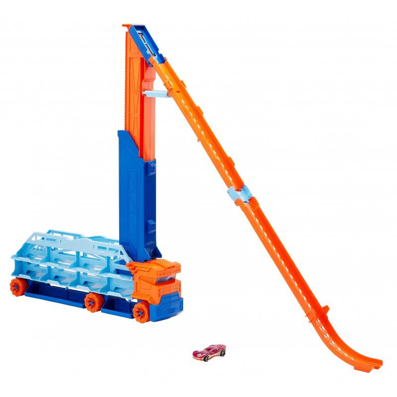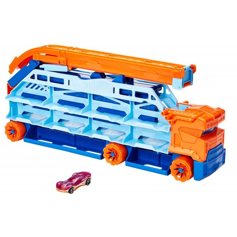 - Transporter - Epic 2in1 Descent Hot Wheels City трансформируется из функционального грузовика, перевозящего автомобили, в удивительную трассу с гравитационным спуском высотой 60 см для экстремальных эмоций.
