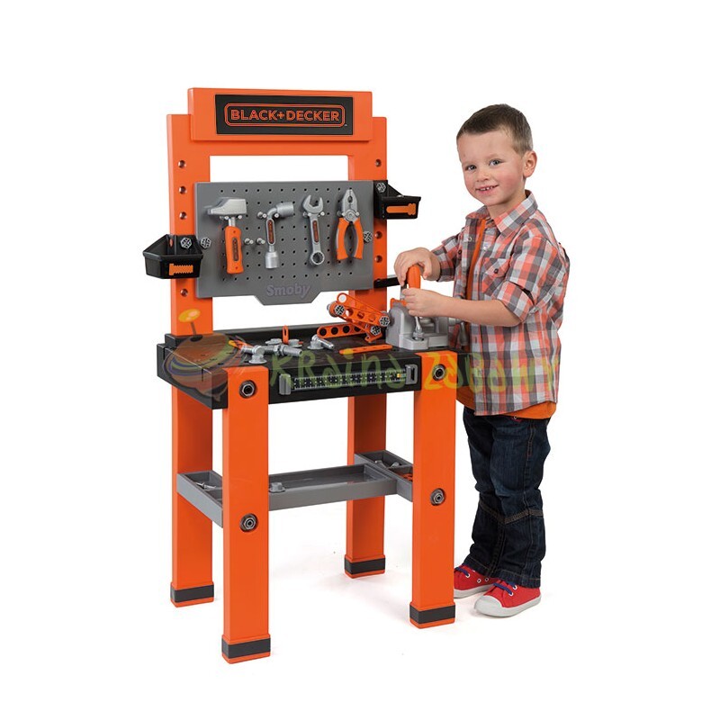 Smoby Black & Decker — это серия лицензированных инструментов и мастер-классов, предназначенных для детей, которые любят творческие и конструктивные игры в DIY. Узнаваемый и ценимый бренд Black&Decker, перенесенный в игрушки высочайшего качества, позволит детям ощутить эмоции, связанные с реальной работой в мастерской, или просто - даст возможность сыграть роль взрослых, которые также пользуются инструментами ежедневно, выполняя различные виды работ по дому.