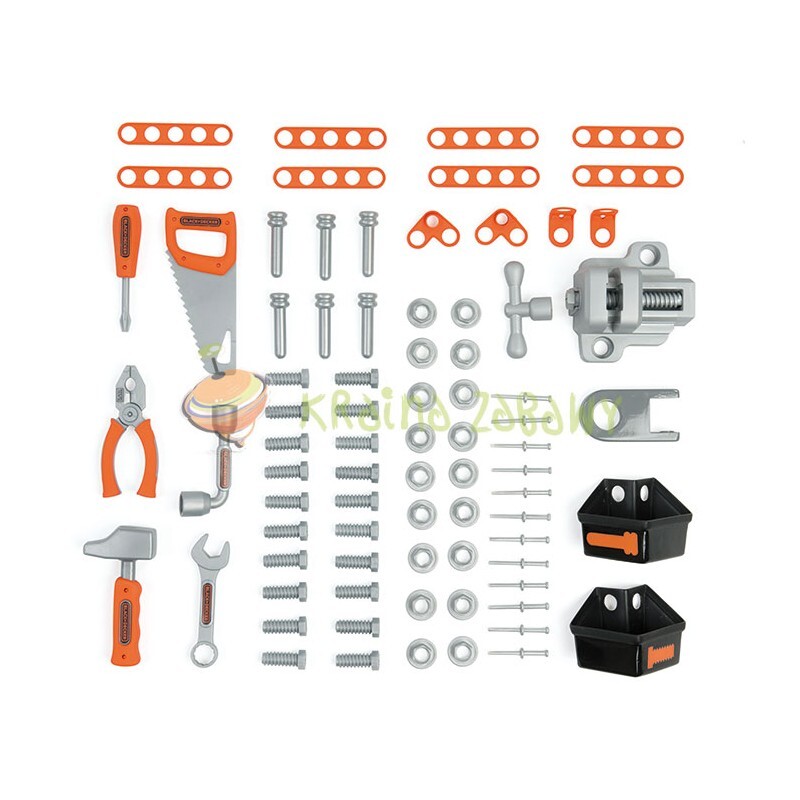 Мастерская Bricolo One Black & Decker — отличное и творческое развлечение для самых маленьких любителей мастерить. Богато оборудованный набор, который включает в себя: мастерскую с тисками, гаечный ключ, пилу, молоток, отвертку, плоскогубцы, различные болты и гайки и мерки с возможностью маркировки длины, несомненно, станет местом большого веселья. Все инструменты легкие, безопасные и удобные для детских ручек. Многочисленные ручки в столешнице и на стене мастерской, а также чрезвычайно практичные лотки и удобная полка под столешницей помогают поддерживать порядок во время и после игры. Профессионально выглядящие инструменты по лицензии популярного бренда Black & Decker идеально имитируют свои настоящие аналоги.