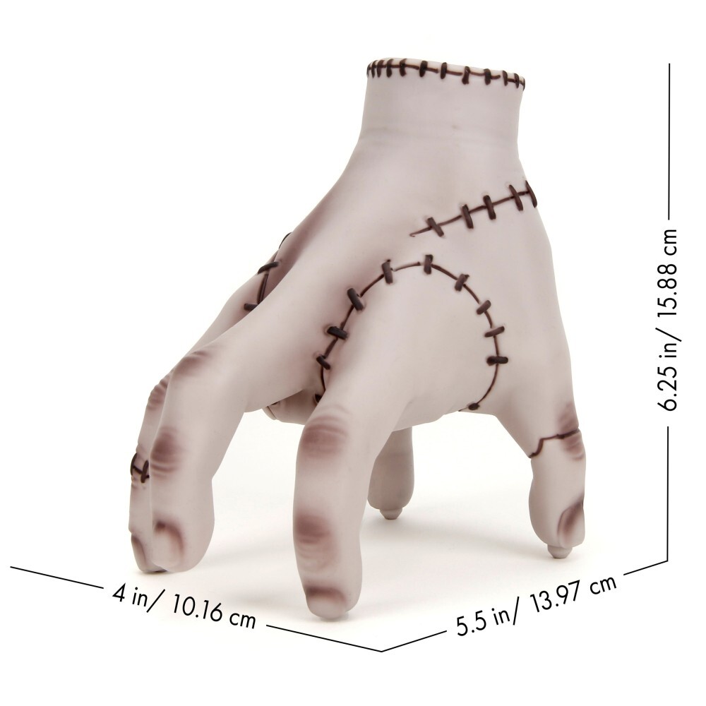 Войдите в мрачный, но уморительный мир Среды Аддамс вместе с одним из самых культовых персонажей - Рукой, отрубленной рукой с прекрасным характером! С помощью этой RC-фигурки вы сможете оживить любимую сцену из сериала или придумать свои собственные извращенные приключения. Этой руке не нужны остальные части тела - у нее есть индивидуальность, стиль и..... пульт дистанционного управления! Выполненная с тщательным вниманием к деталям - от шрамов до ногтей - она выглядит так, будто ее взяли прямо со съемочной площадки. Она двигается, создавая жуткое впечатление, что ползает по полу, и вызывает приступы смеха и мурашки по позвоночнику одновременно! Она идеально подходит для того, чтобы напугать друзей или стать необычным украшением стола. Ручка никогда не перестает впечатлять.