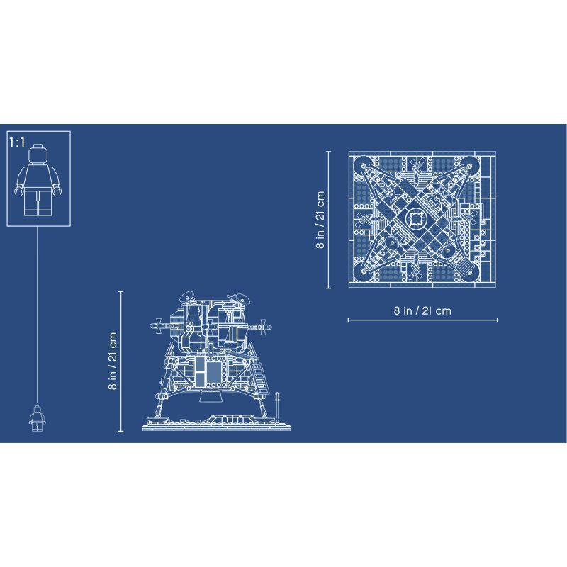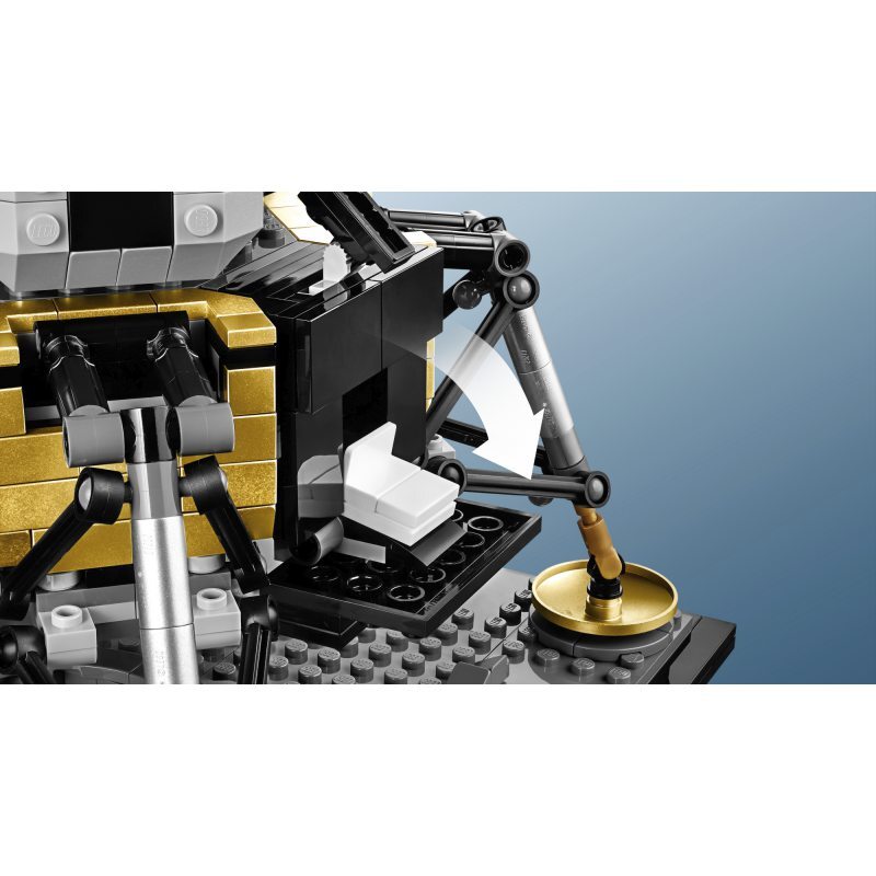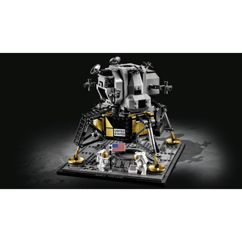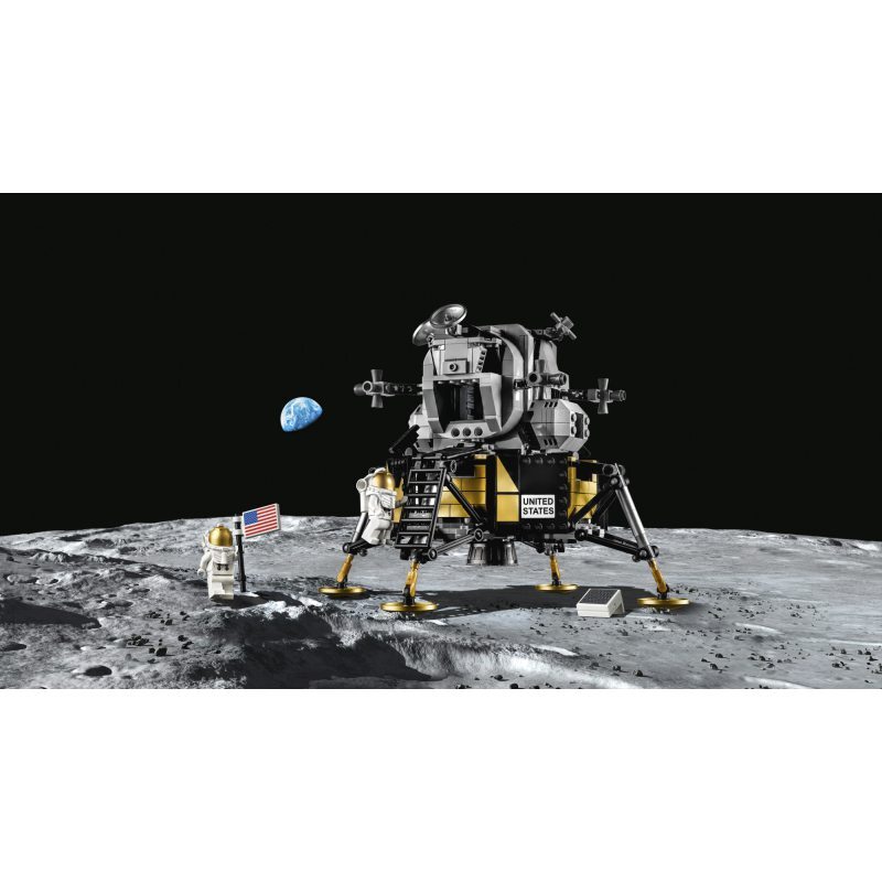 Отпразднуй одно из важнейших событий в исследовании космоса вместе с этой моделью лунного модуля корабля НАСА Аполлон 11!Орёл приземлился! Отметь 50-летний юбилей первой высадки человека на Луне вместе с этой копией лунного модуля корабля НАСА Аполлон 11. В этой модели лунного модуля корабля Аполлон 11 LEGO Creator Expert ты увидишь множество реалистичных деталей, в том числе посадочную ступень с золотистыми посадочными опорами и отделкой, открывающимися отсеками для камер и лазеров и раскладывающейся лестницей. Открой дверцу взлётной ступени, чтобы взглянуть на детально проработанный интерьер кабины для двух космонавтов и сборную пластину с изображением лунной поверхности с кратером, следами человека и флагом США. Эта модель лунного модуля корабля Аполлон 11, дополненная специальной именной табличкой, станет главным украшением твоего дома или офиса и будет напоминать о первой в истории высадке человека на Луне в 1969 году.Набор включает в себя 2 минифигурки астронавтов с символикой НАСА и золотистыми шлемами. Этот большой набор LEGO включает в себя детализированную копию лунного модуля Eagle с отдельными ступенями взлёта и посадки, а также фрагмент лунной поверхности с кратером, следами и американским флагом. Посадочная ступень состоит из посадочных опор и панелей (золотистого цвета, который будет добавлен в палитру используемых цветов только в июне 2019 года), открывающейся камеры, люков с лазерной гравировкой и лестницы. Взлётная ступень отличается детально проработанным интерьером и имеет помещение для 2 минифигурок астронавтов. Отпразднуй пятидесятилетие этого значимого события в освоении космоса, пополнив свою коллекцию коллекционной моделью с высокой степенью проработки деталей. Среди дополнительных элементов сборная видеокамера и лазерный отражатель. В июне 2019 года мы добавим в число производимых нами элементов такие, как табличка Лунный модуль Аполлон-11 и элементы золотистого цвета. Размеры: 20 см х 22 см х 20 см.