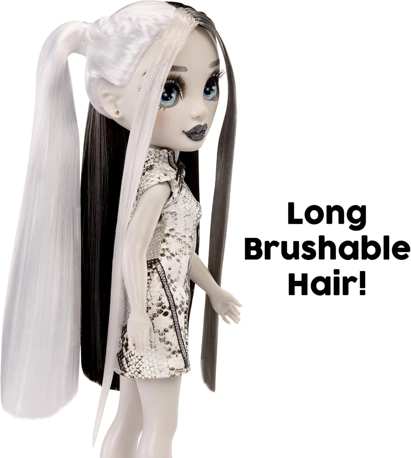 Восхитительные детали: Хизер Грейсон выделяется своим уникальным стилем и черно-белым стилем с головы до ног. У нее полированные детали наряда, длинный хвост в черно-белых тонах, настоящие ресницы и стеклянные глаза, которые добавляют ей особый шарм