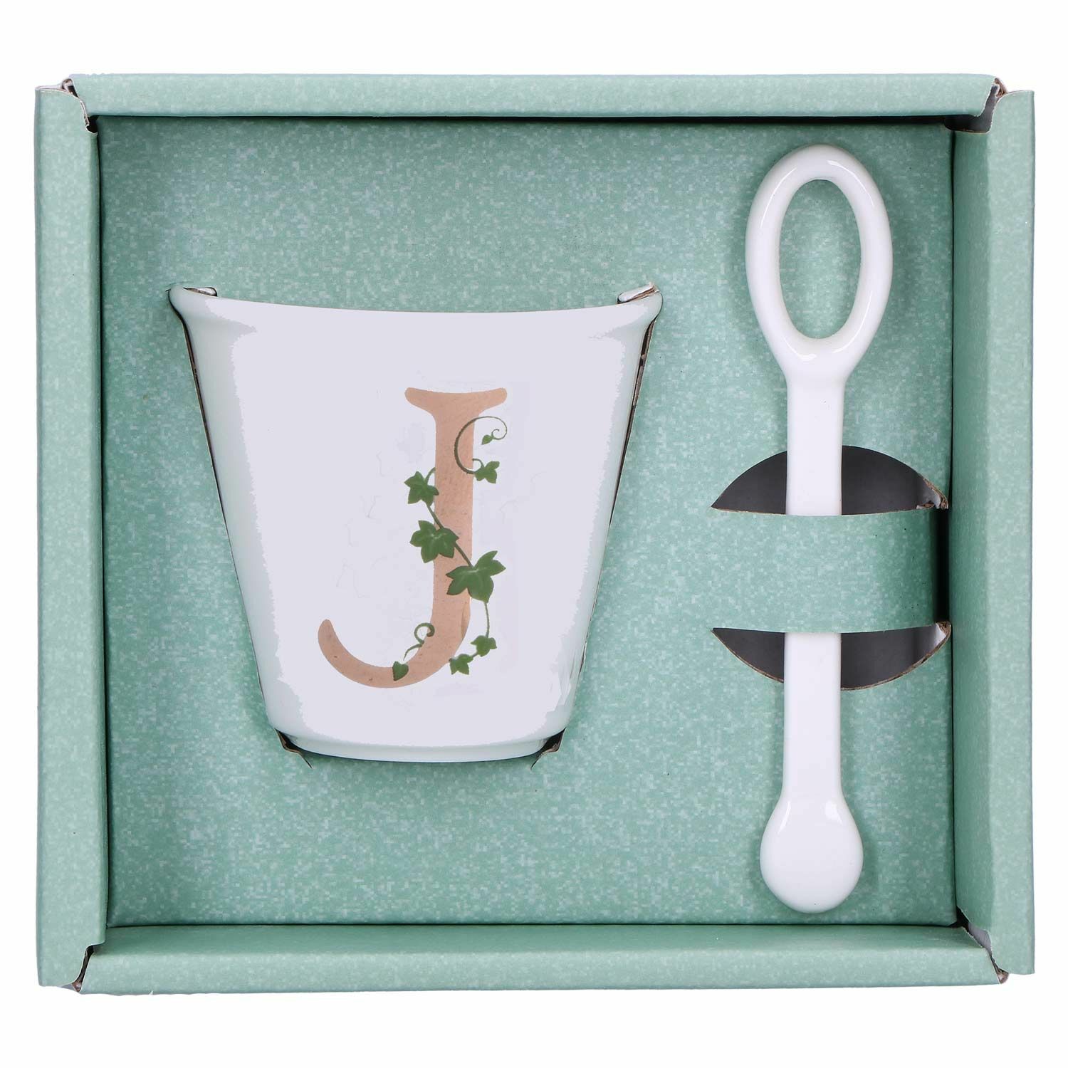 Набор из чашки и ложки для эспрессо Letter J от La Porcellana Bianca из коллекции Unico украшен бледно-розовыми буквами алфавита и растительным мотивом, что придает ему неповторимый характер. Эта чашка идеально вписывается в кофейный сервиз и идеальна для подачи горячего эспрессо. Оригинальный дизайн позволяет создать персонализированную коллекцию чашек.