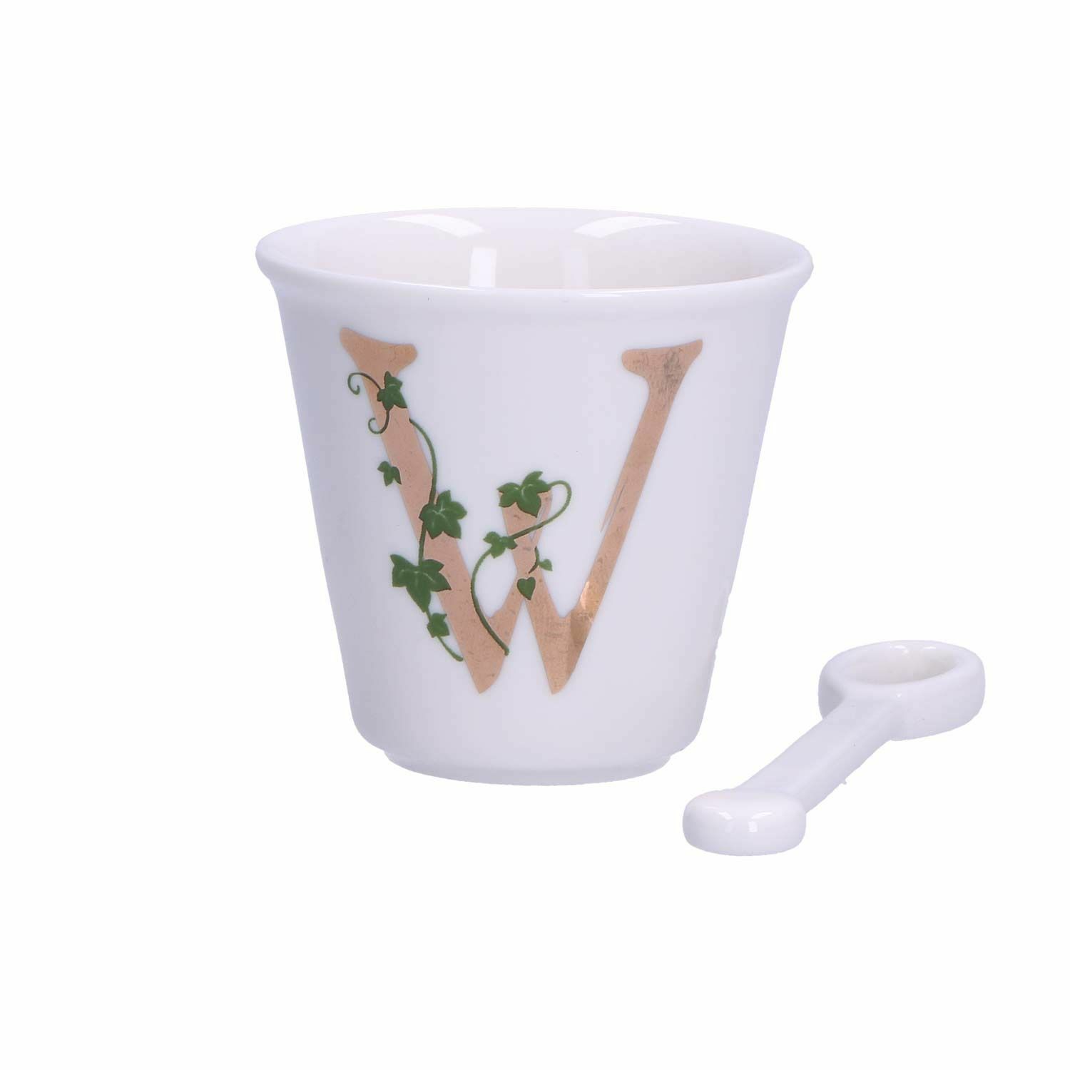 Набор из чашки и ложки для эспрессо Letter W от La Porcellana Bianca из коллекции Unico украшен бледно-розовыми буквами алфавита и растительным мотивом, что придает ему неповторимый характер. Эта чашка идеально вписывается в кофейный сервиз и идеальна для подачи горячего эспрессо. Его оригинальный дизайн позволяет создать персонализированную коллекцию чашек.