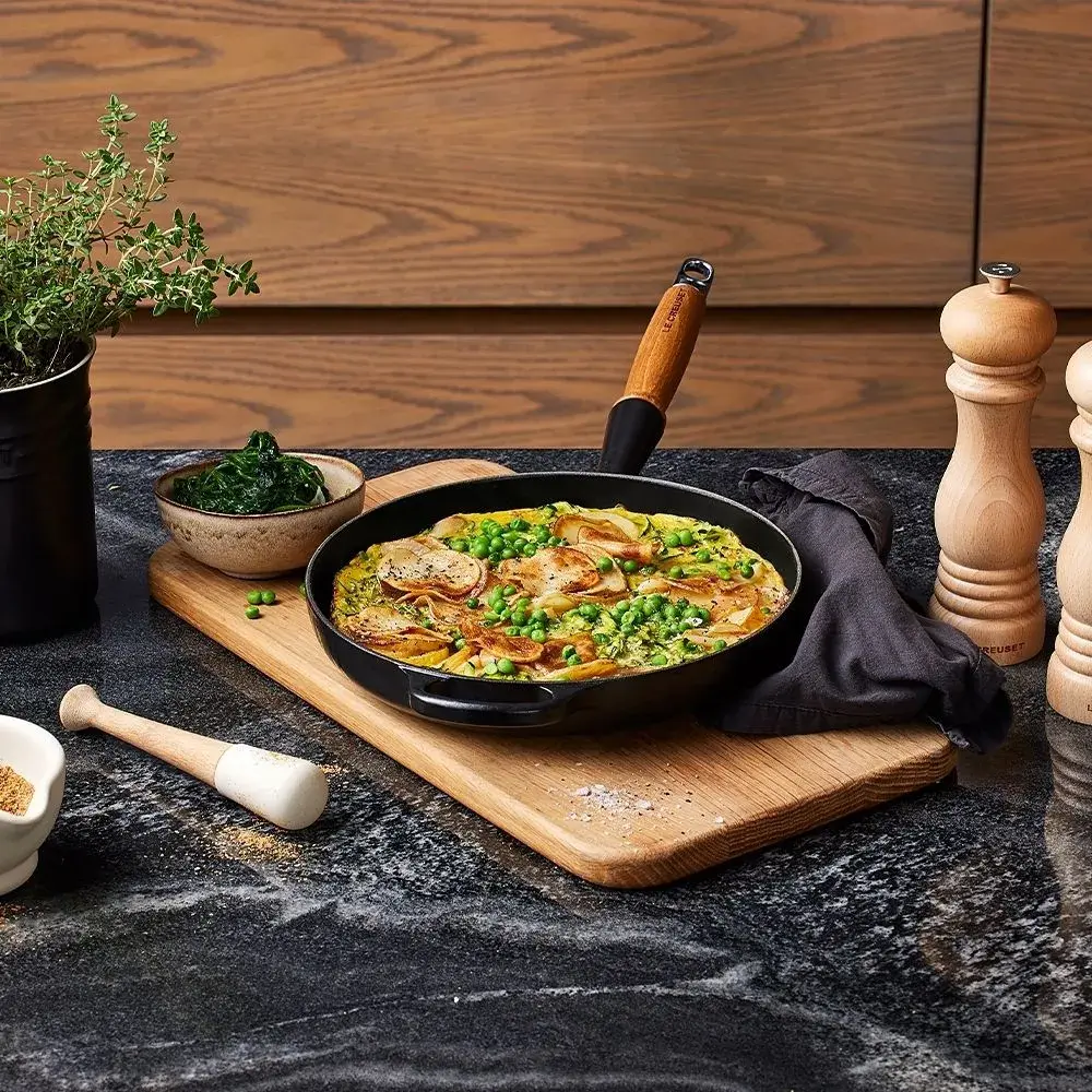 Ненагревающаяся ручка из древесины бука обеспечивает комфорт при переноске сковороды, а благодаря съемной ручке посуду Le Creuset можно поместить в духовку и безопасно мыть в посудомоечной машине.