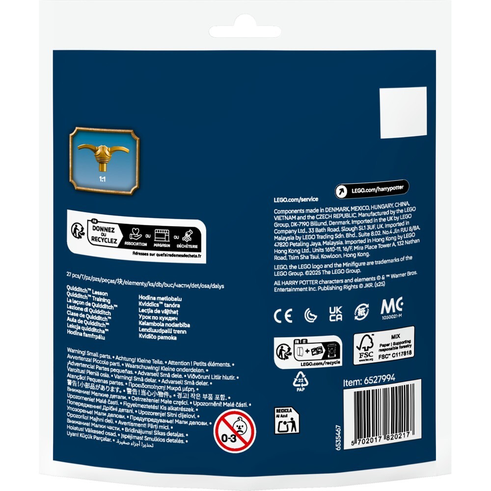 Из двадцати семи деталей вы построите фигурку Гарри и снаряжение для квиддича. Также вы найдете культовый золотой факел, прыгающую палочку и большую красную плитку. Переживите сцену из фильма "Гарри Поттер и философский камень" еще раз! Перенеситесь в мир волшебства и спортивного азарта!