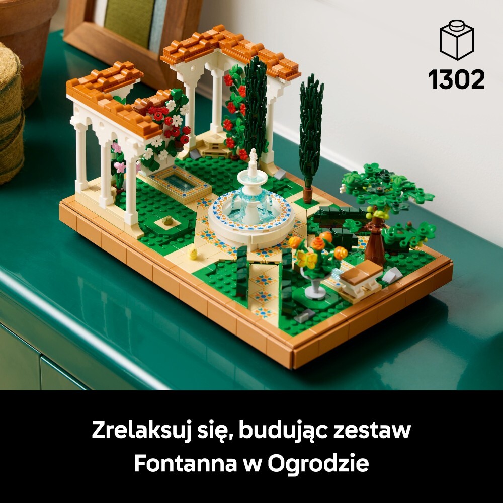 - Расслабьтесь, собирая набор для взрослых LEGO Icons "Фонтан в саду" (10359) для красивого украшения домашнего кабинета. Расслабьтесь и воссоздайте сложные детали, расположите деревья, цветы и беседки, а также переставьте участки сада, чтобы добиться желаемого вида.