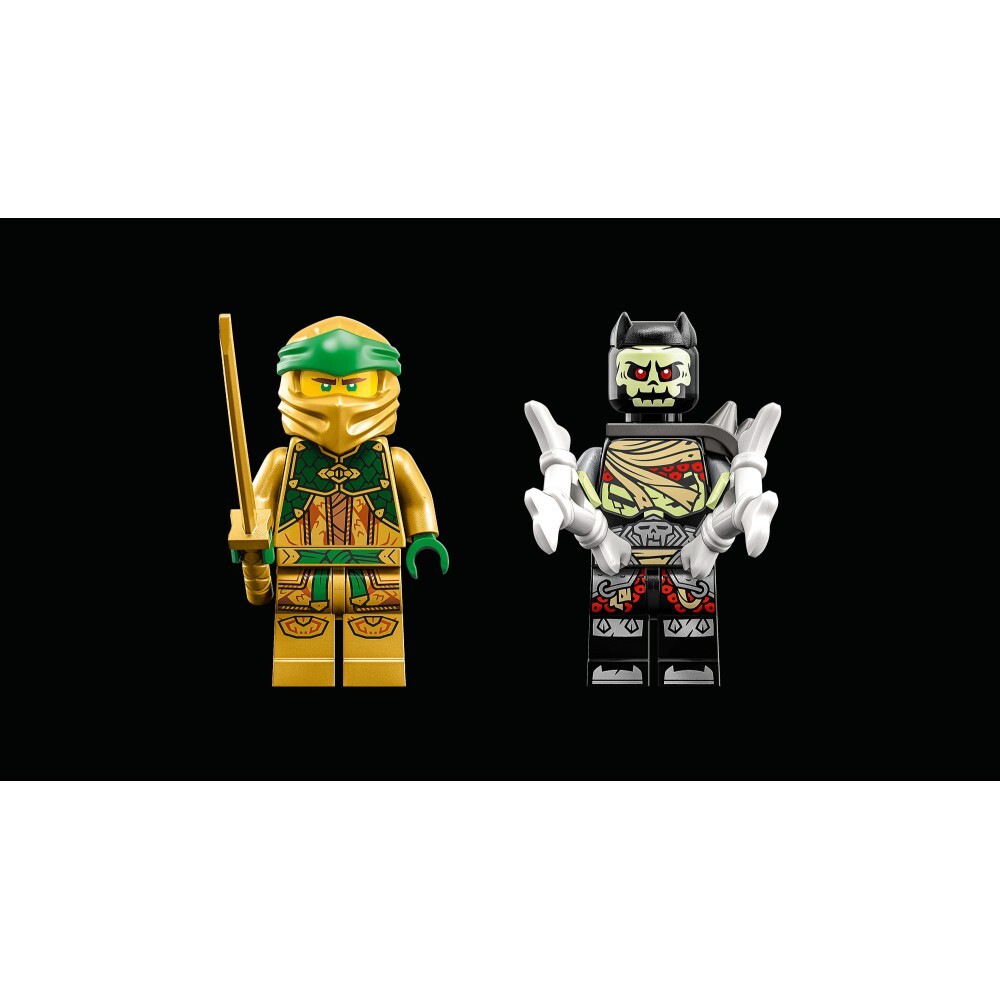 Две минифигурки. В этот набор NINJAGO входят две минифигурки: Золотой Ллойд с золотым мечом и воин-скелет, вооруженный двумя сюрикенами, что позволяет детям устраивать захватывающие сражения.