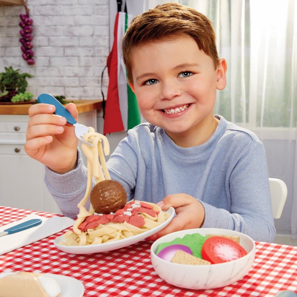 Creative Chefs Итальянский обед - это полный кулинарный набор, который призывает к совместной игре, созданию собственных рецептов и сервировке семейных ужинов в детском исполнении.
