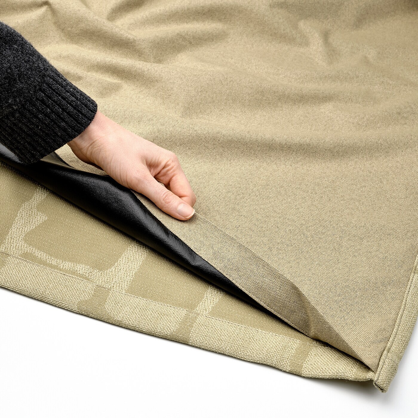 Для обеспечения мягкости и эластичности слоев шторы блэкаут и подкладка сшиты между собой только с трех сторон, а не снизу.