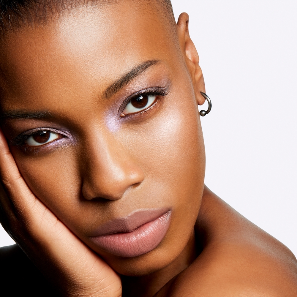 Нанесите кистью на скулы и смешайте до линии волос.