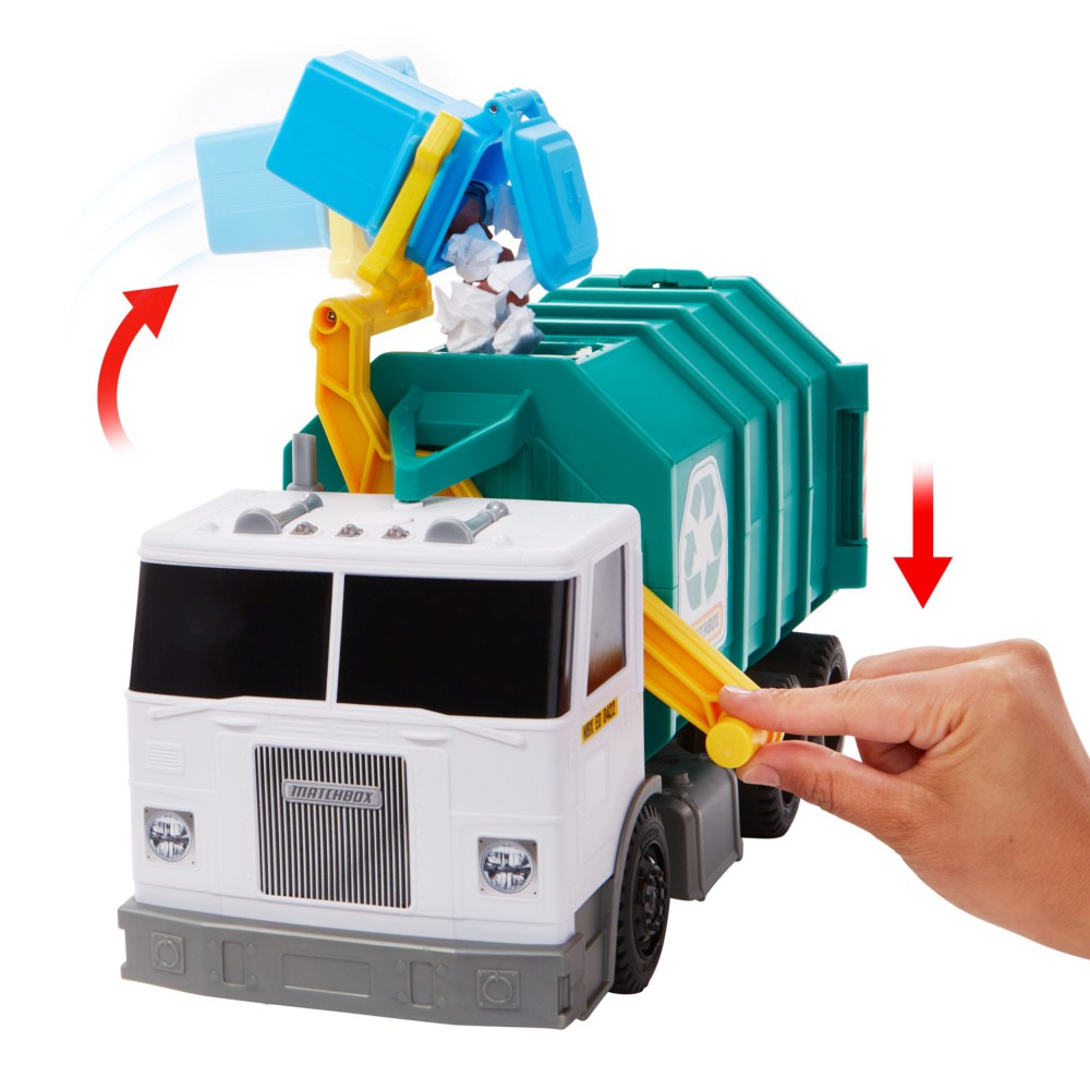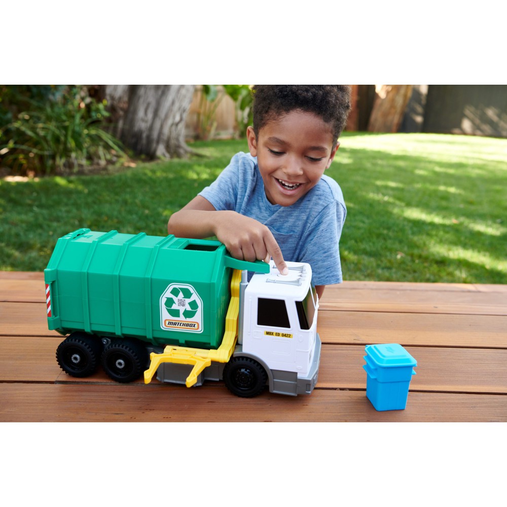 Мусоровоз для переработки Matchbox - это большой транспортный средство, которое позволяет детям сочетать веселую игру с знаниями о том, как заботиться о окружающей среде.
