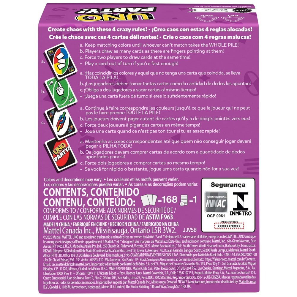 UNO Party - это сенсационная игра для вечеринок и семейных вечеров, а также идеальный подарок для хозяев домашних праздников!